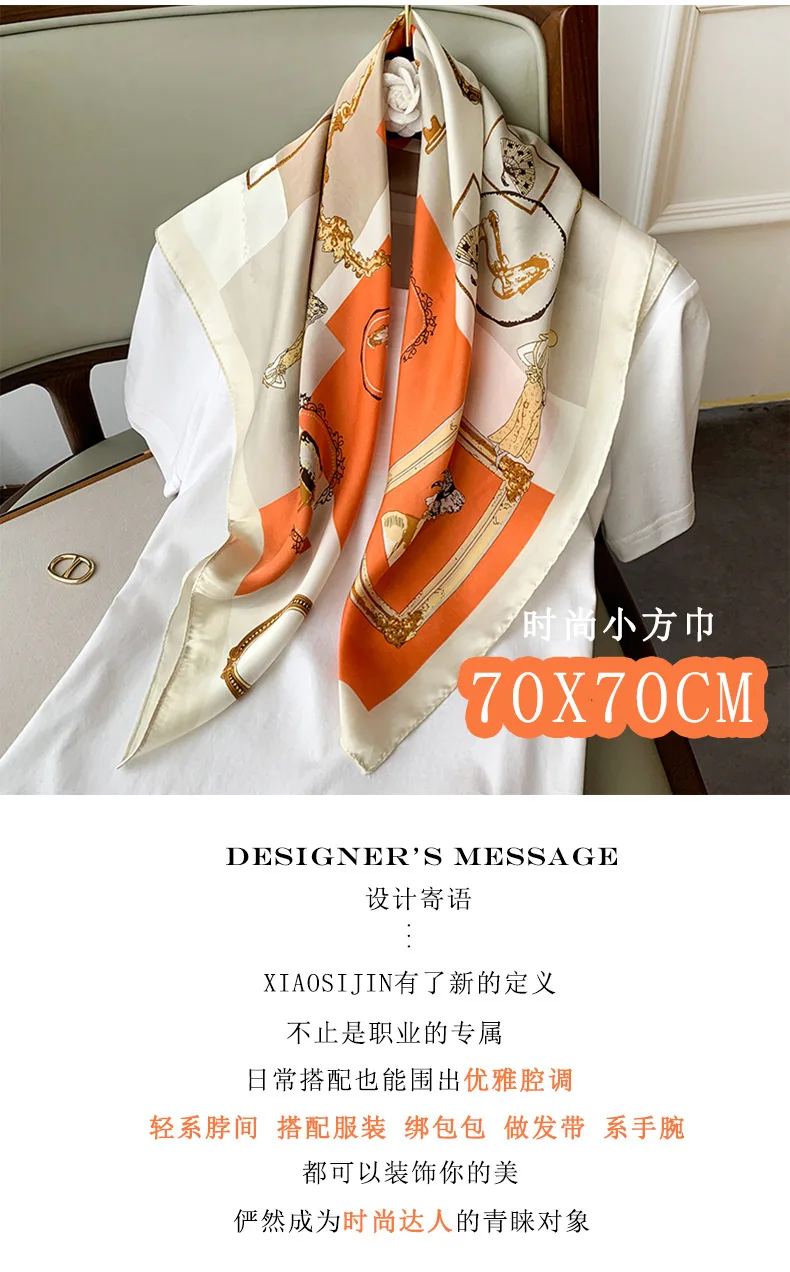 Платок женский Шелковый, квадратный, 70 Х70 см, весна-осень, роскошный фуляр