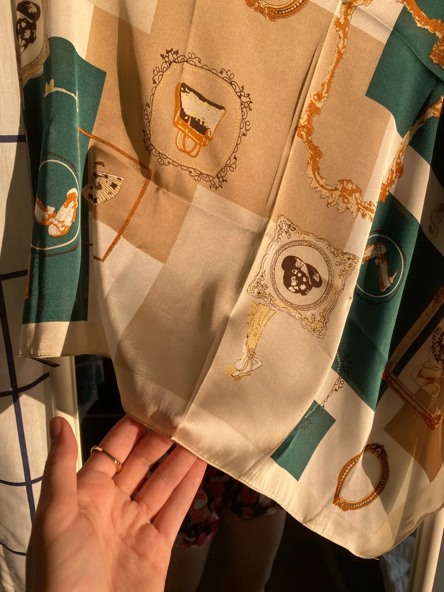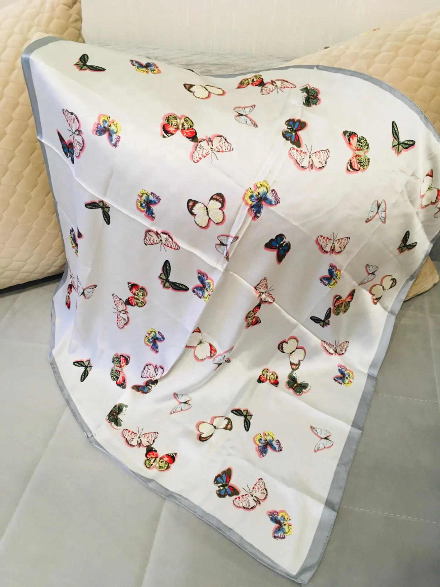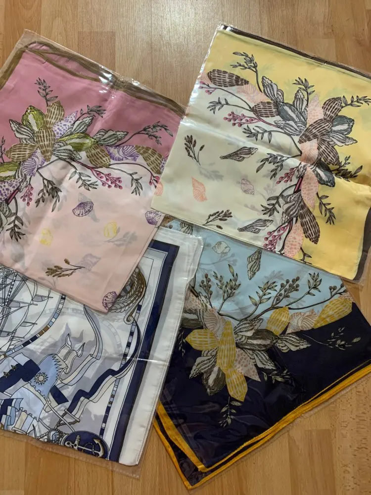 Отличный платок. Не уверена, что настоящий шёлк, но очень приятный. Яркий принт и ровные швы. Спасибо продавцу за заказ. Очень рада.