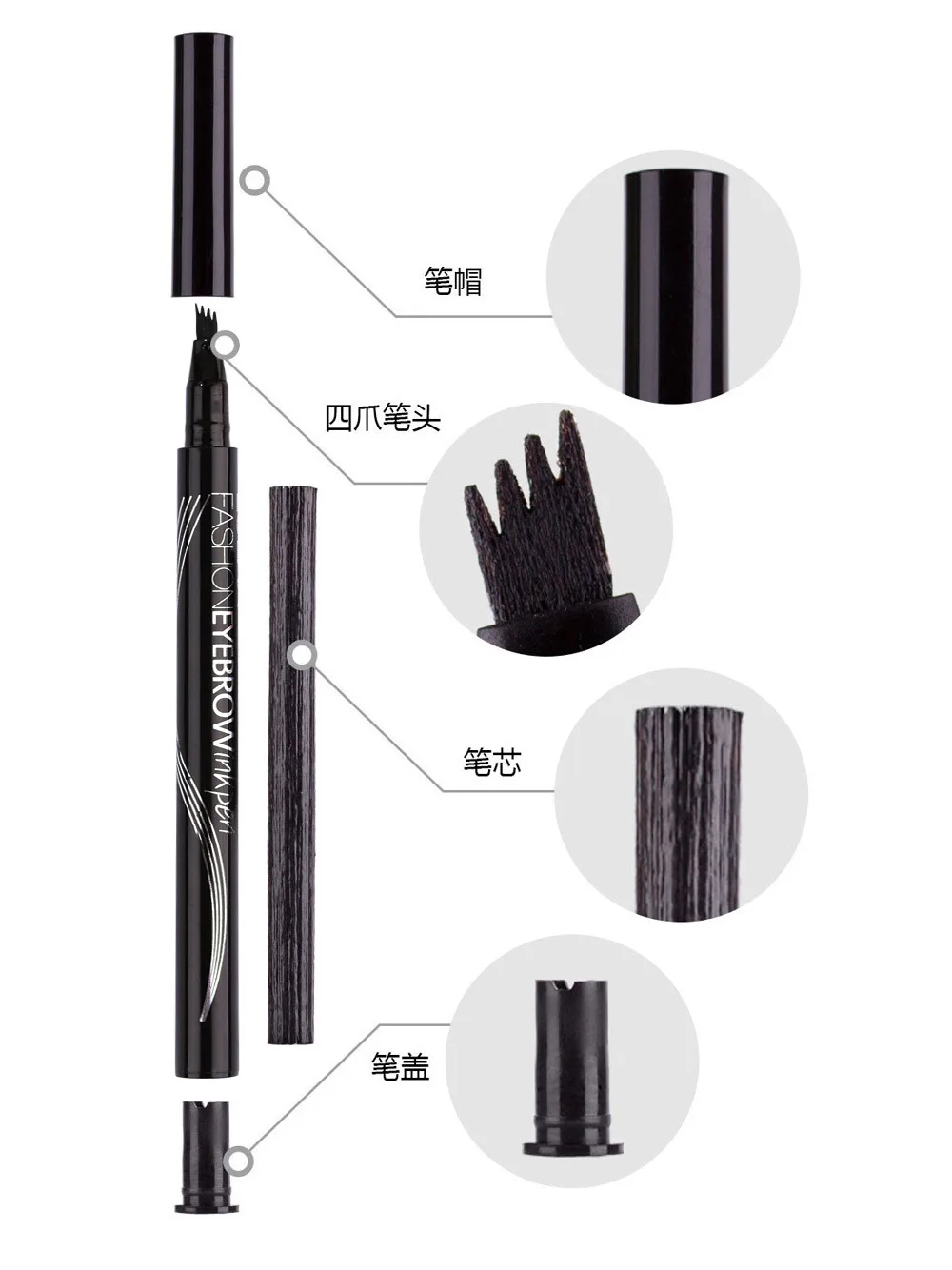 2. Легко наносится-уникальные наконечники с четырьмя вилками, прорисуйте контур бровей и продолжайте равномерно окрашивать внутрь по форме бровей, на последнем шаге для создания ярких и натуральных бровей.