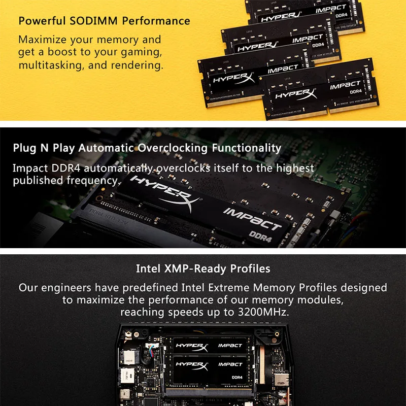 ОЗУ Kingston HyperX Impact, DDR4 2666, SODIMM, 8 ГБ, CL15, 16 ГБ, 2666 МГц, 1,2 в, 260pin, для ноутбуков, для игр