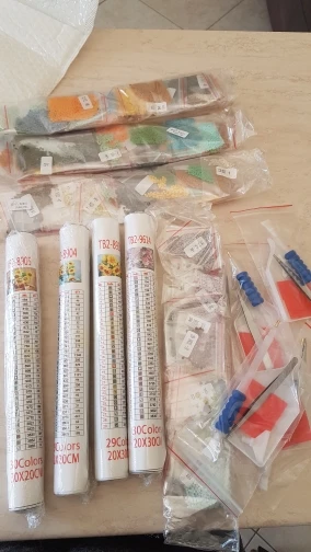 Картины приехали с полной отслежкой, стразы рассортированы по зип-пакетам и по большим к каждой картинке, страз с запасом правда в некоторых пакетах вкрапления других цветов. Сами полотна намотаны на валик и запечатаны в слюду. Картины приобретались в подарок, все довольны. Покупкой и продавцом довольна, рекомендую