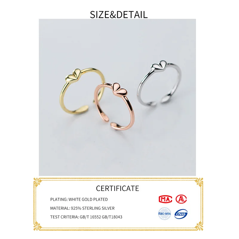 Trustdavis 100% Серебро 925 пробы милое Сердце Открытое кольцо на п...