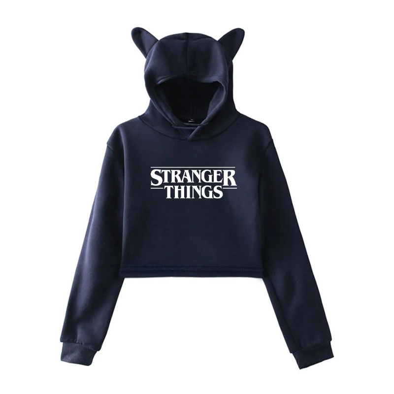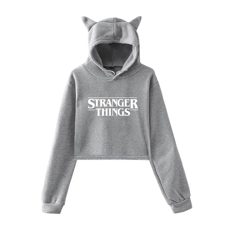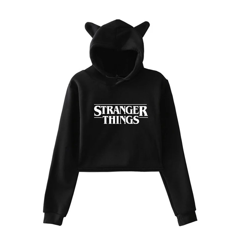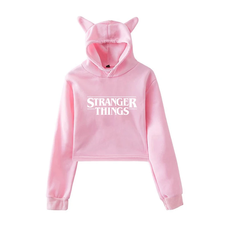 Светящиеся корейские толстовки с капюшоном очень странные дела Женские Модные свитшоты Короткие топы женские розовые кошачьи уши осенне-весенние Пуловеры Одежда