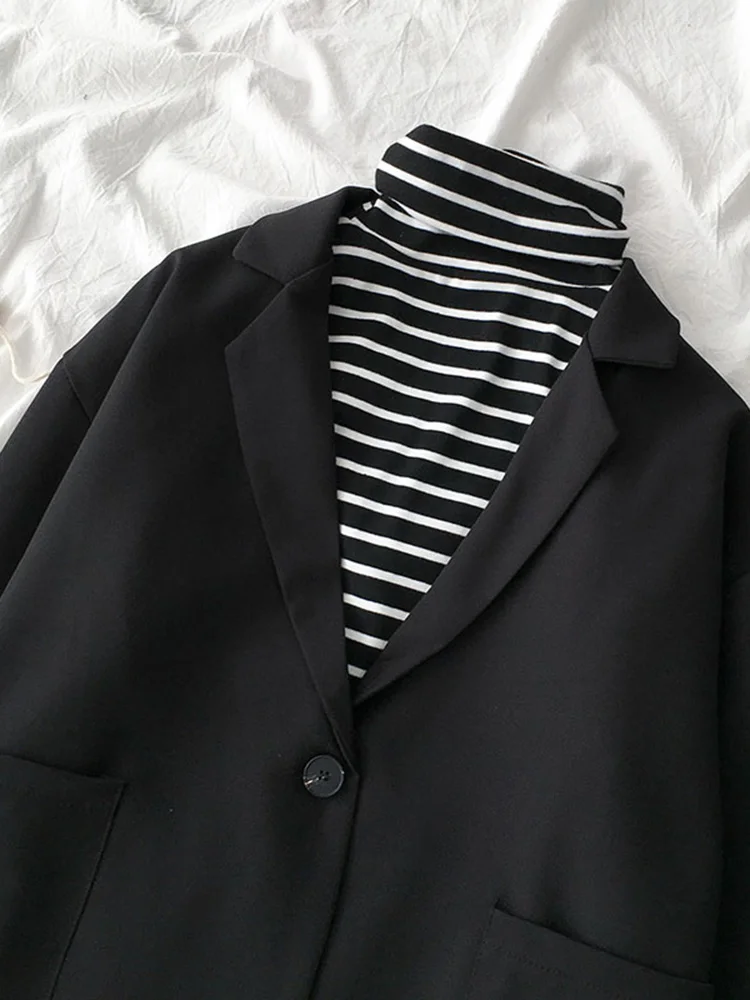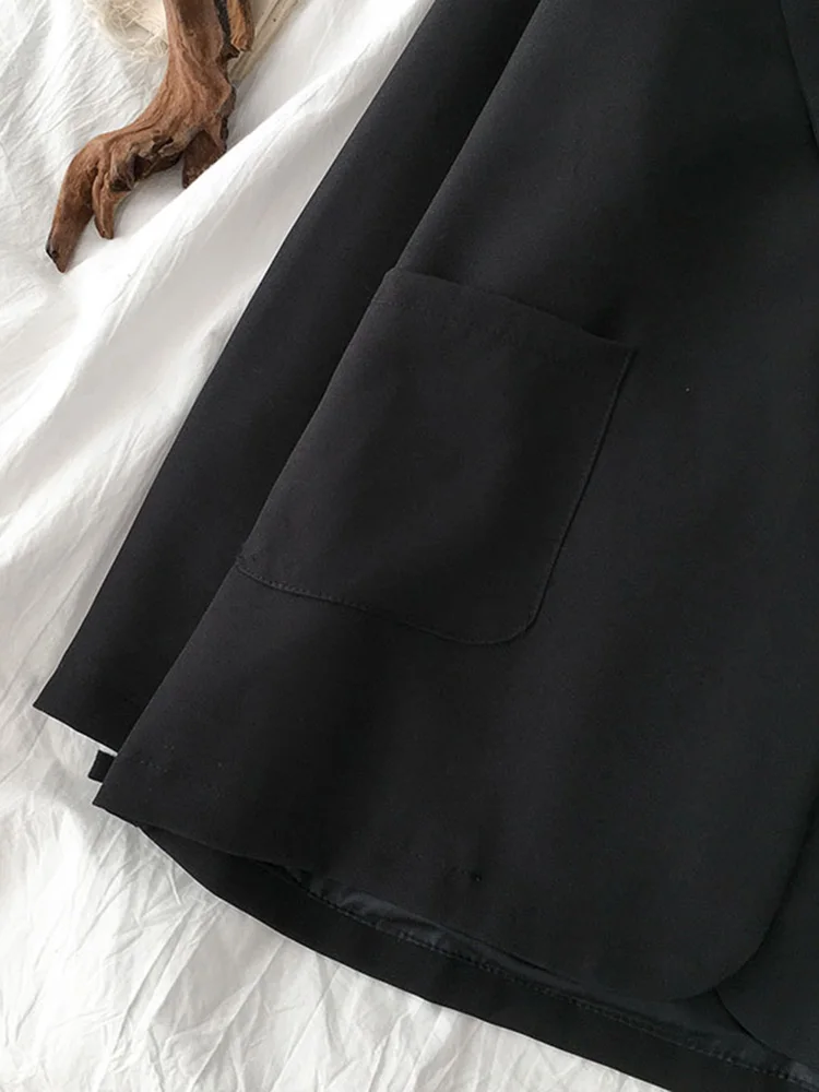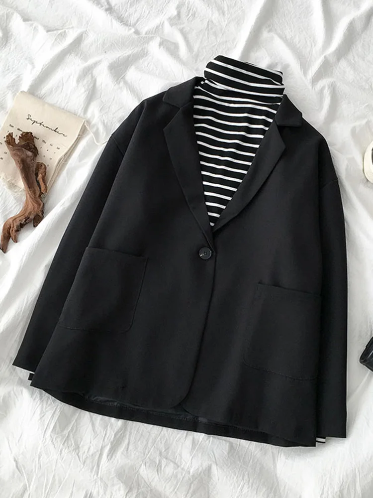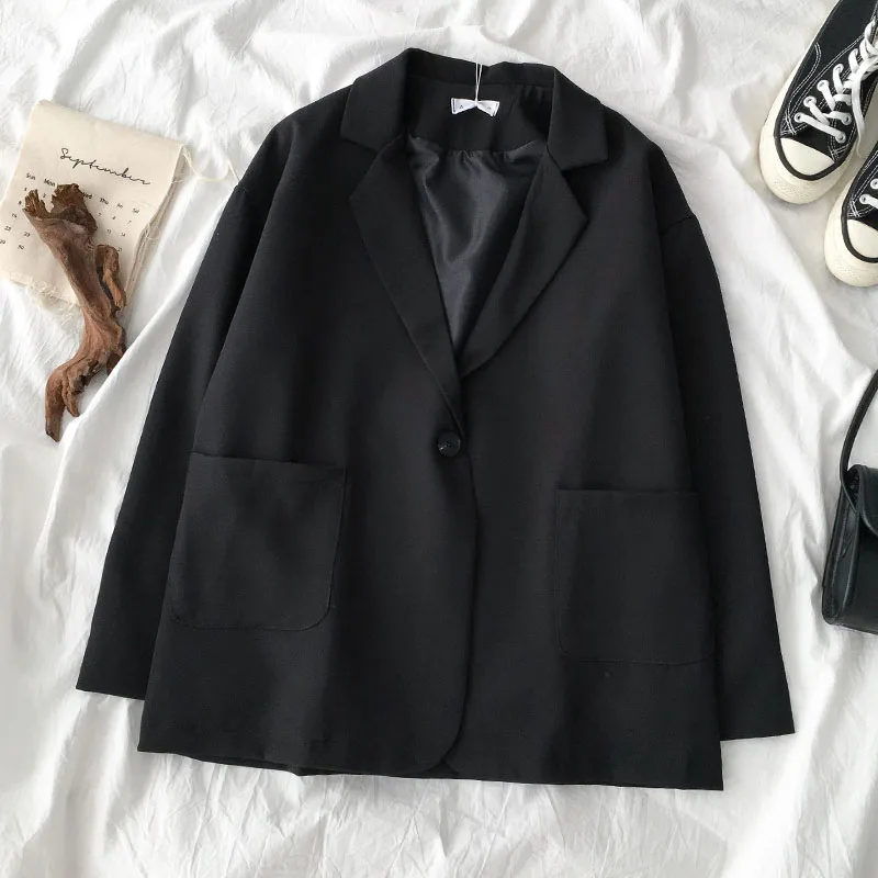 Женский блейзер в стиле ретро, элегантный черный свободный пиджак в Корейском стиле на одной пуговице с отложным воротником, одежда для улицы, весна-осень