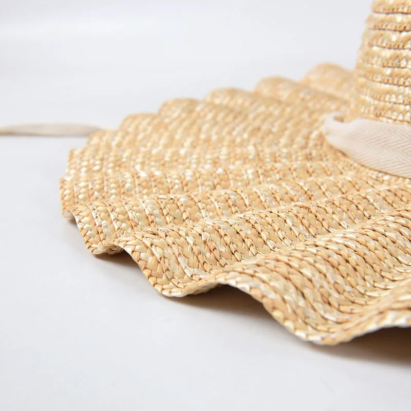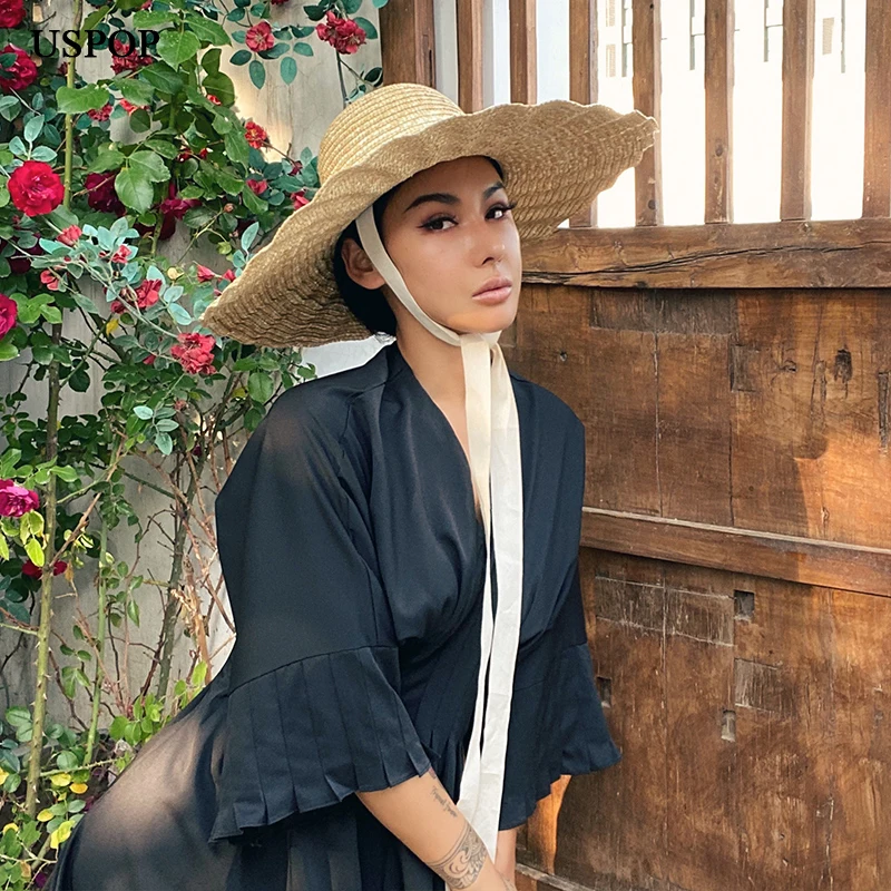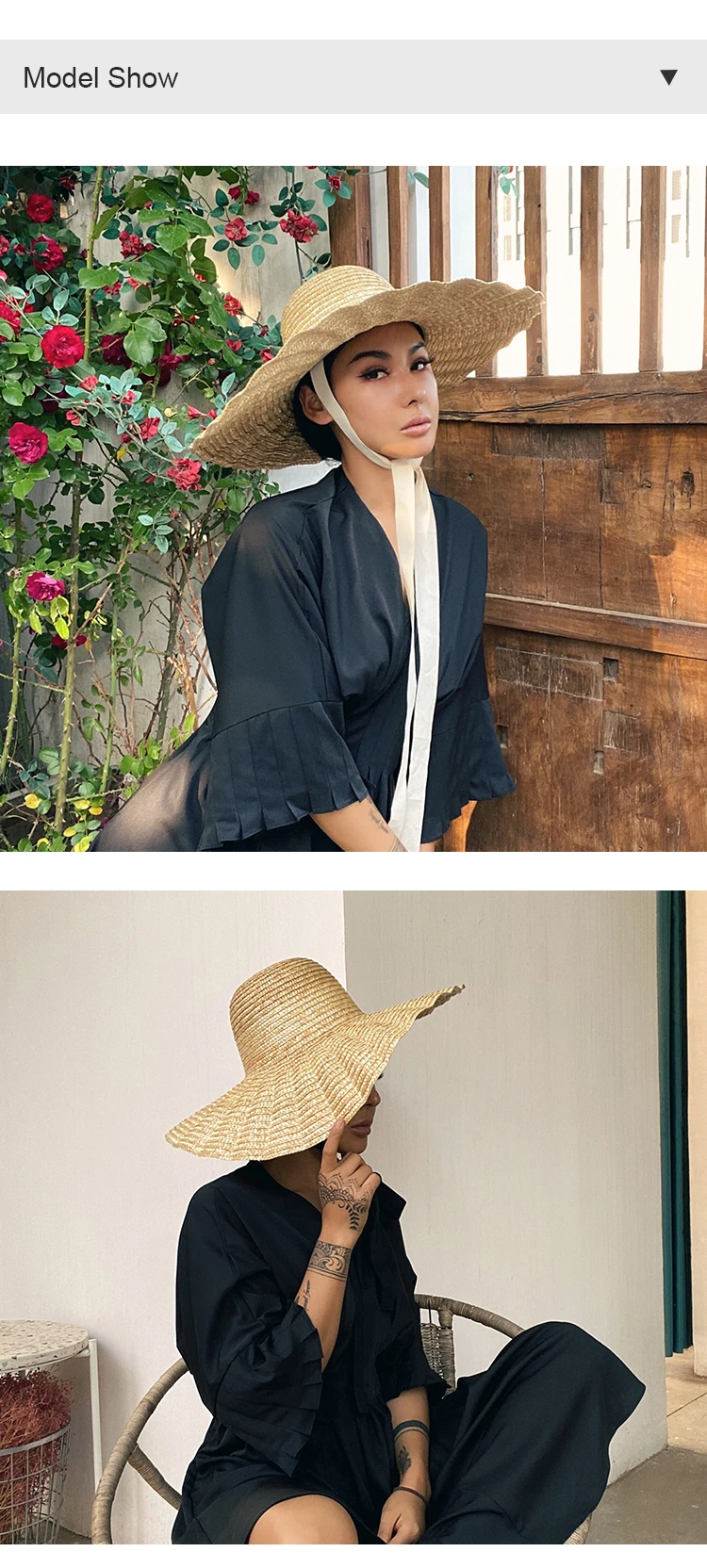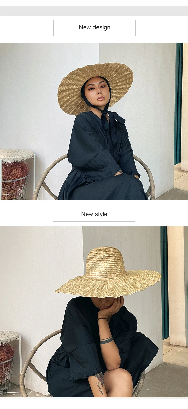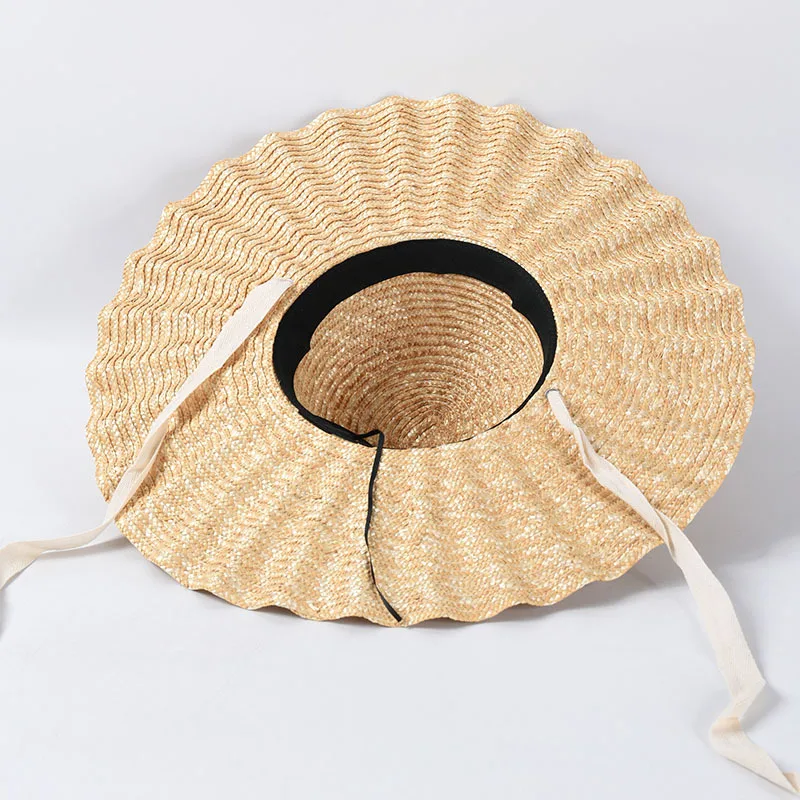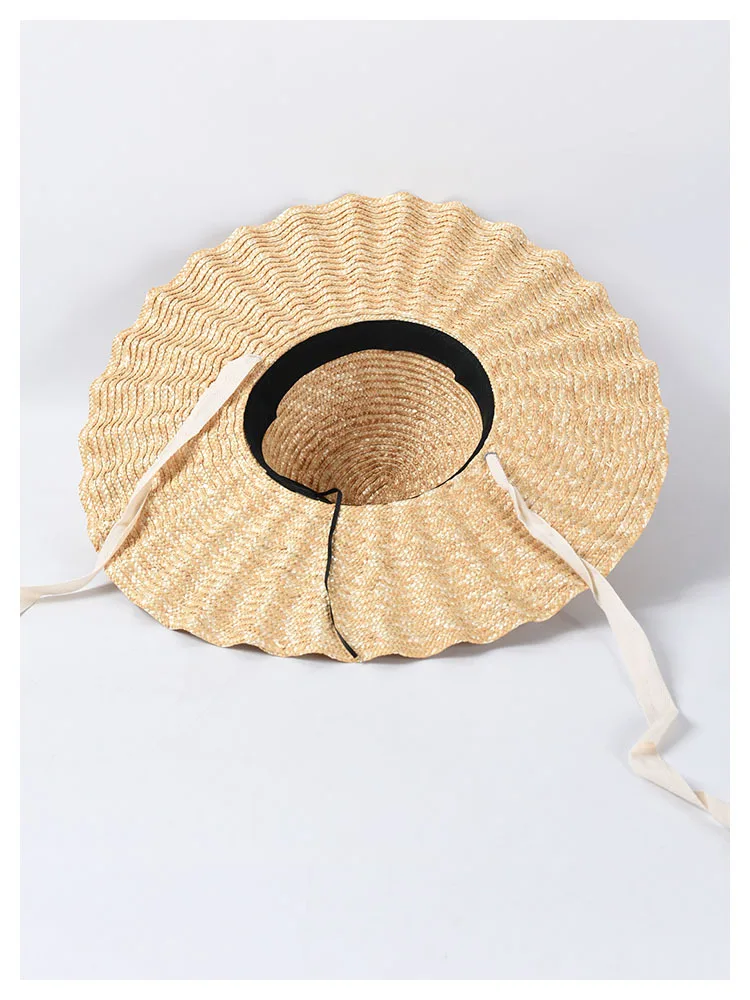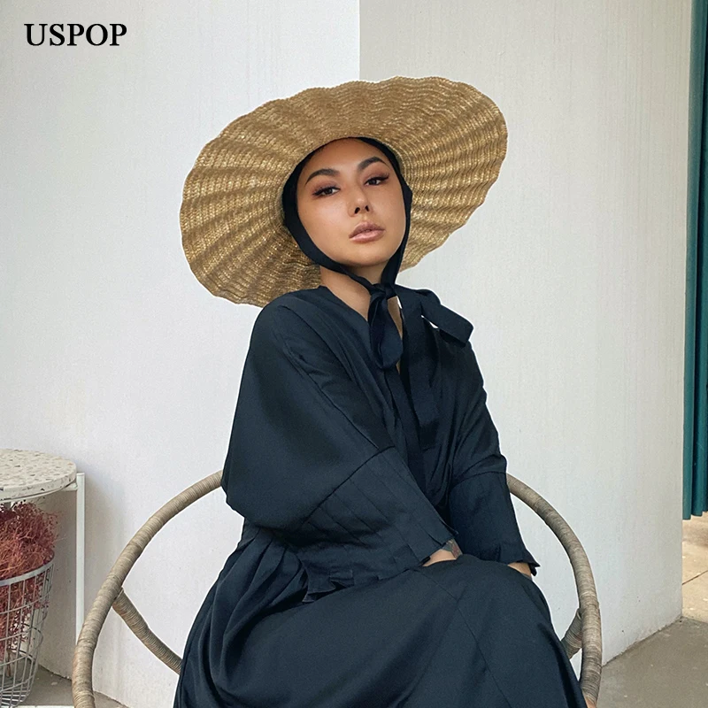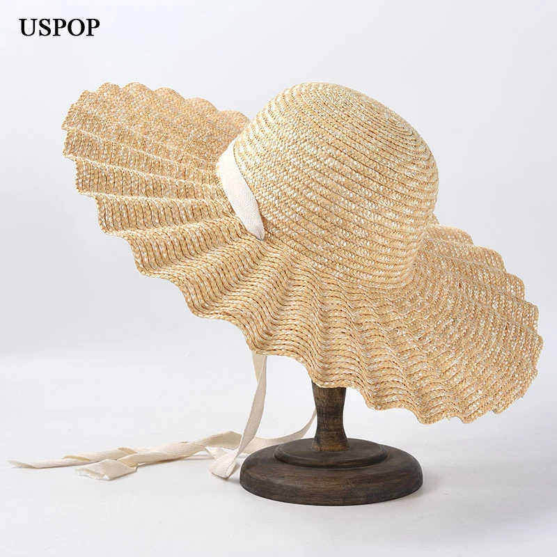 Шляпа USPOP соломенная с крупными волнистыми полями женская, Пляжная шапка на шнуровке, длинная соломенная шляпа из натуральной пшеницы