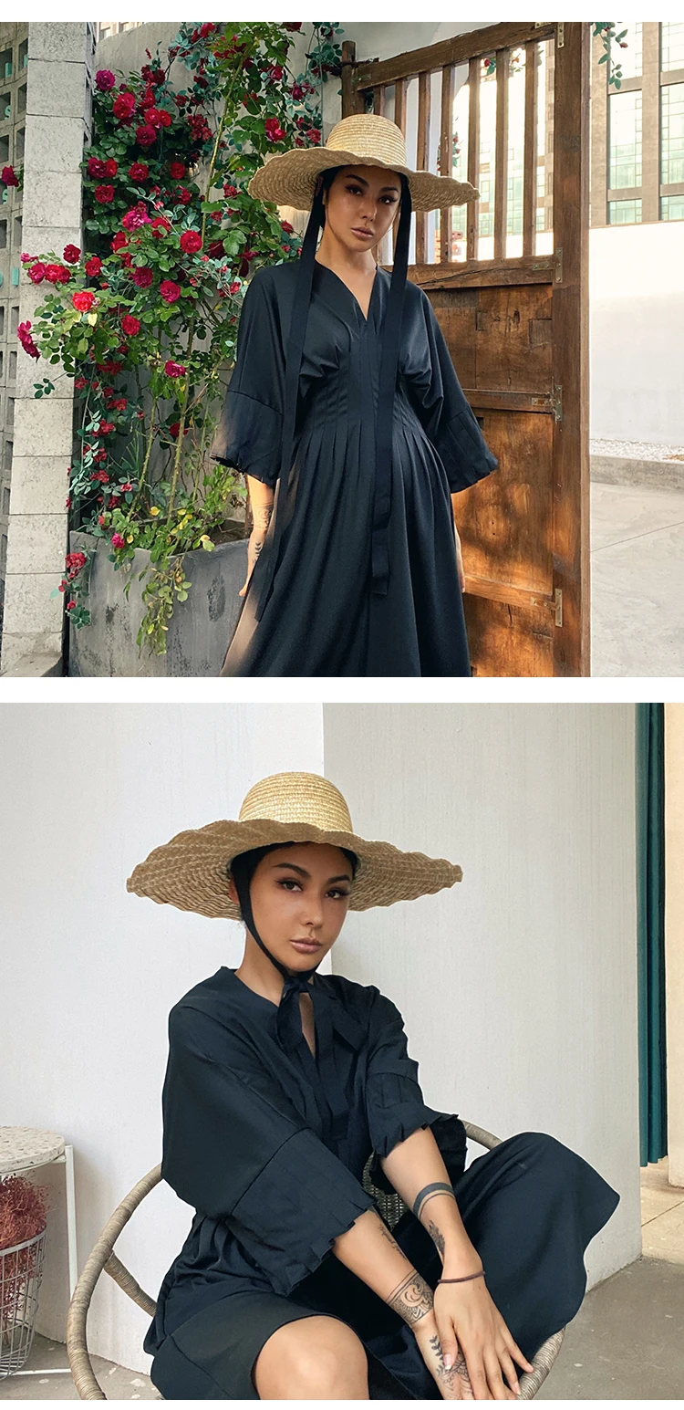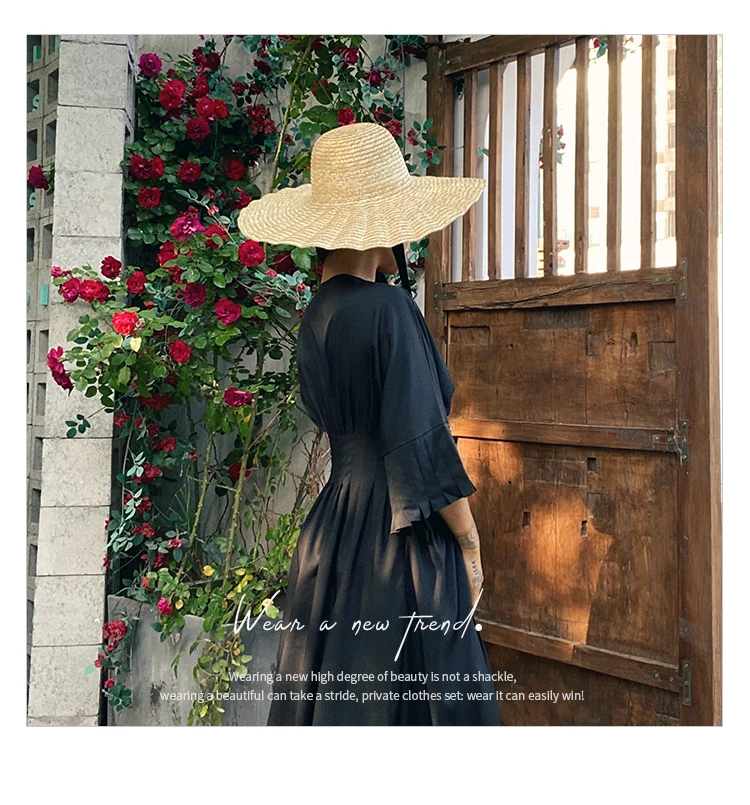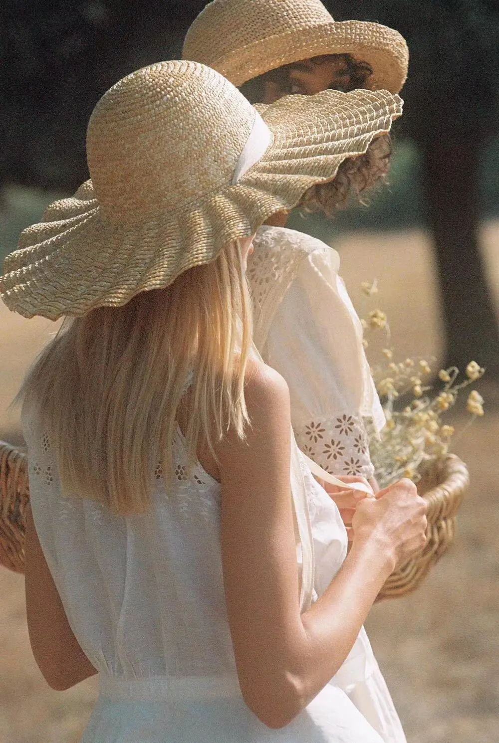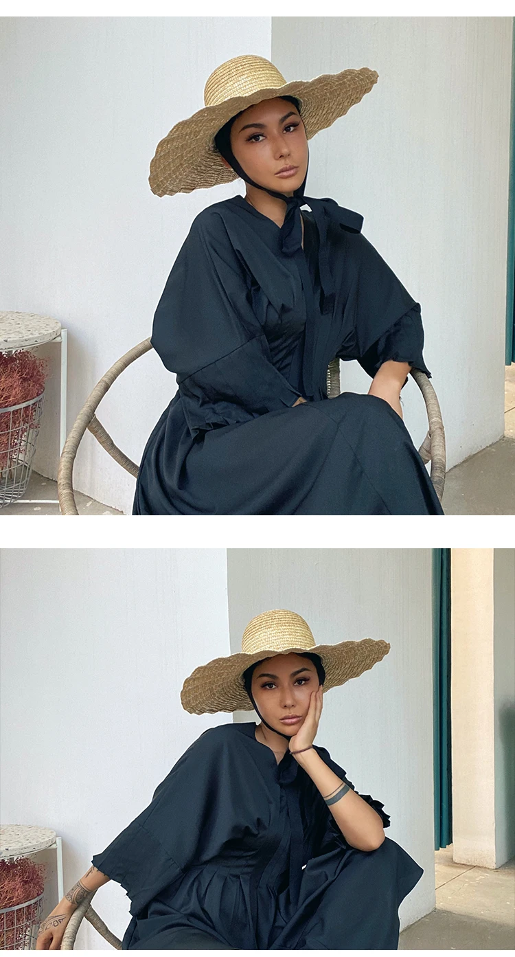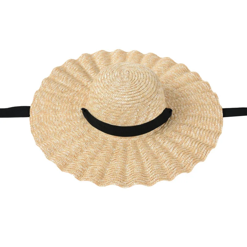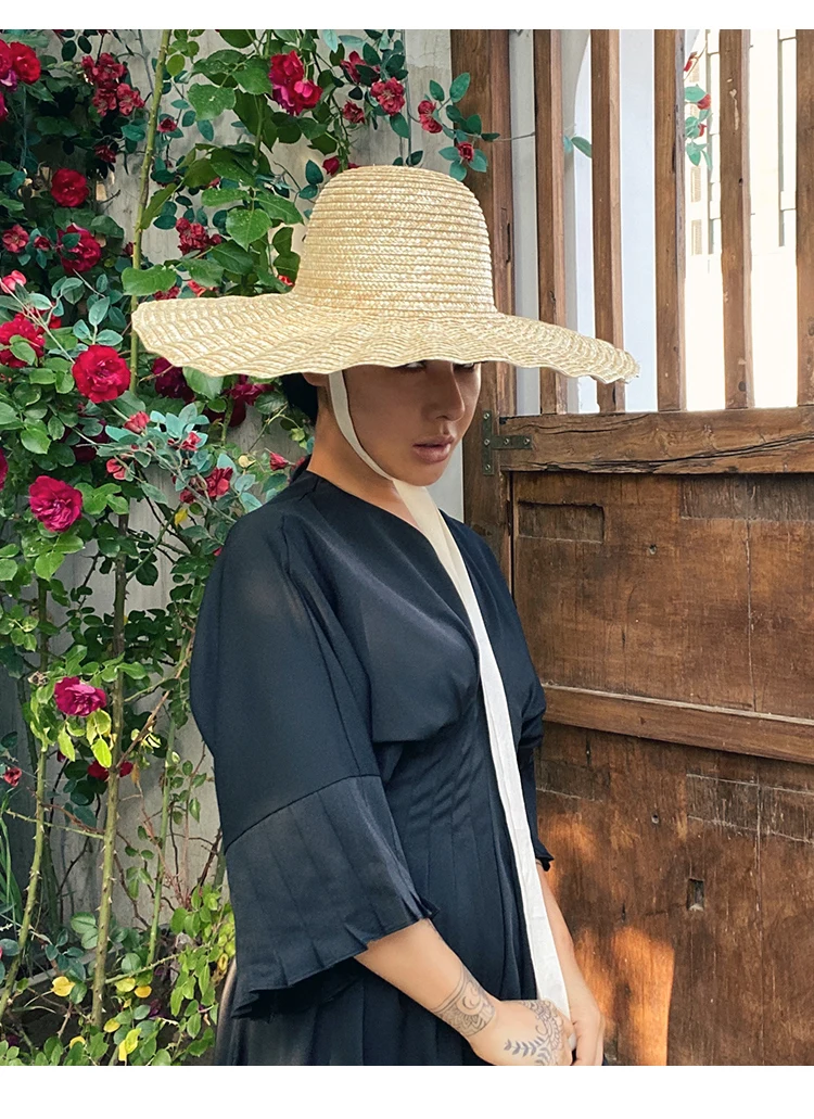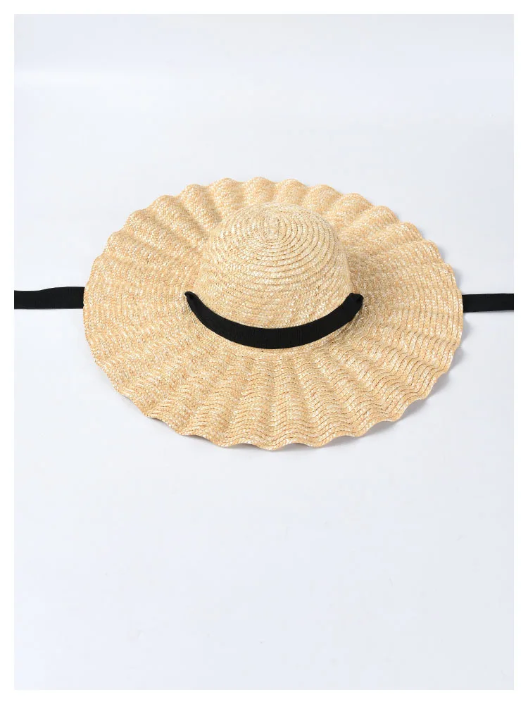 Шляпа USPOP соломенная с крупными волнистыми полями женская, Пляжная шапка на шнуровке, длинная соломенная шляпа из натуральной пшеницы