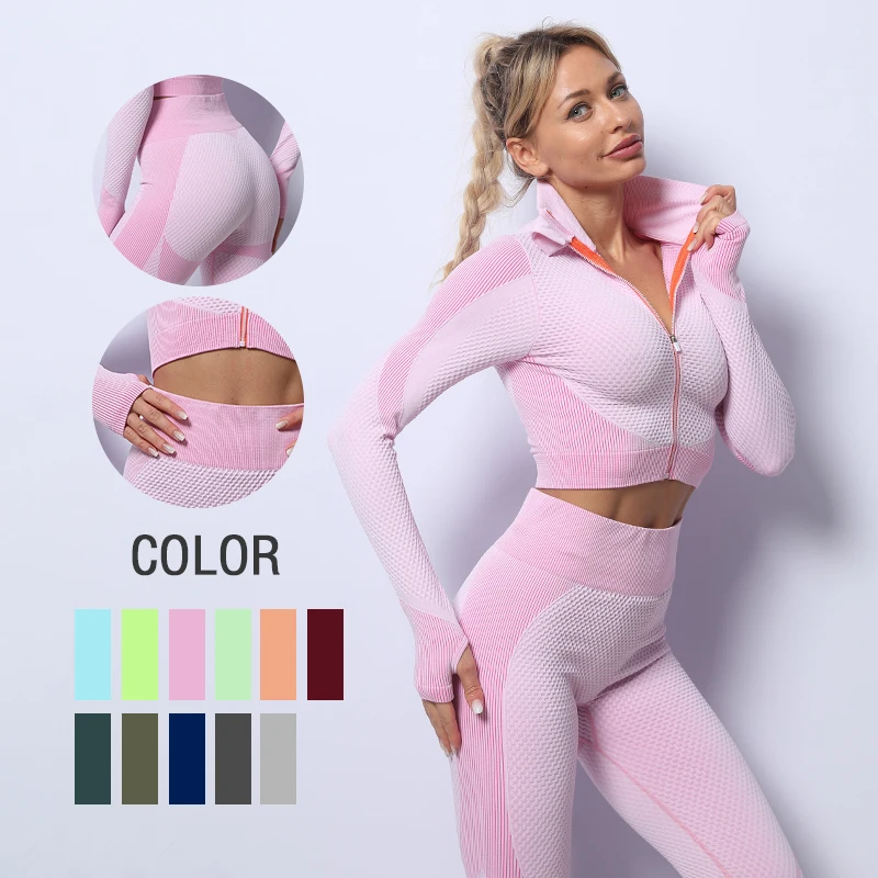 Женский комплект для йоги, для бега, бесшовная спортивная одежда, леггинсы для фитнеса, укороченный топ, спортивная одежда, леггинсы для фитнеса с высокой талией, костюм для занятий йогой