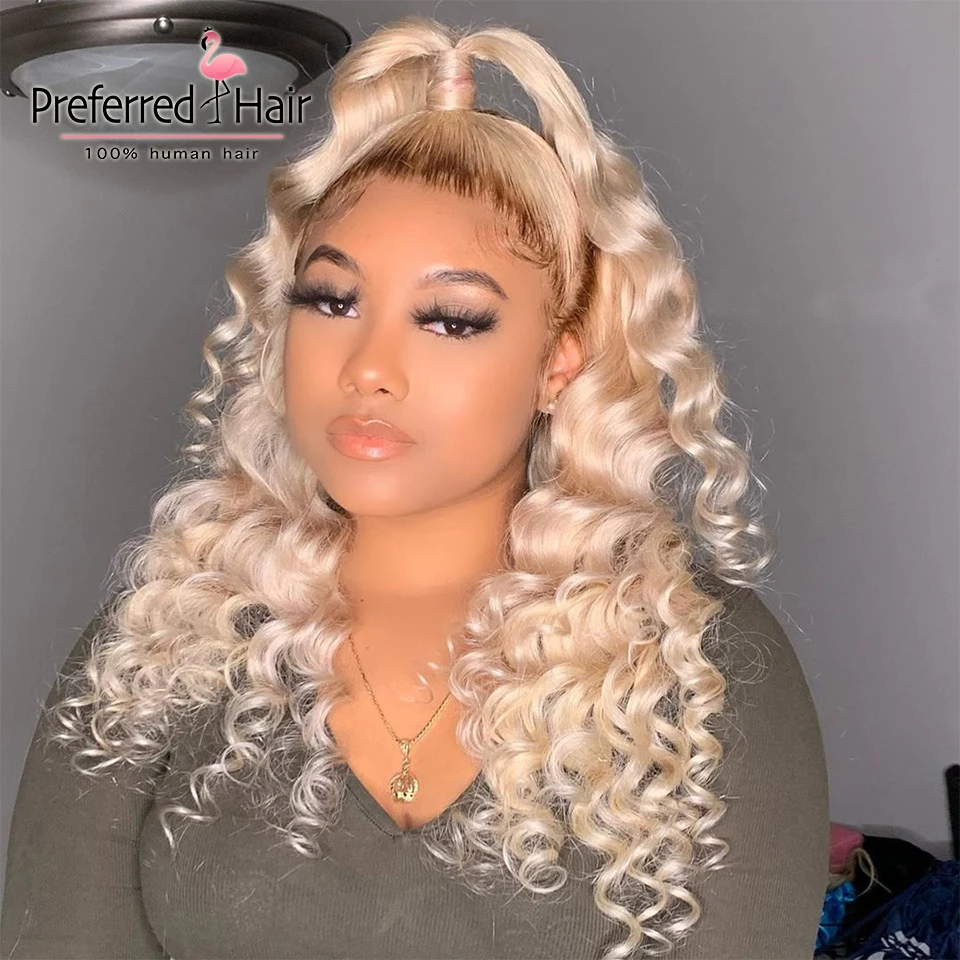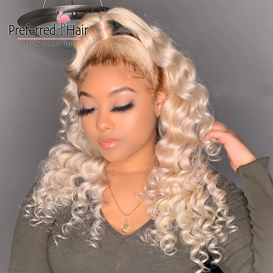 Предпочтительная высокая плотность пепельно блонд кудрявые человеческие волосы парик предварительно выщипанные волосы Remy
