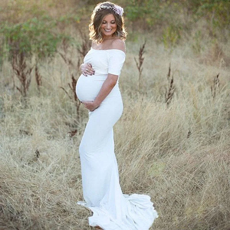 Хлопковые длинные платья для беременных с открытыми плечами и коротким рукавом Одежда для беременных и беременных женщин платье для беременных для фотосессии