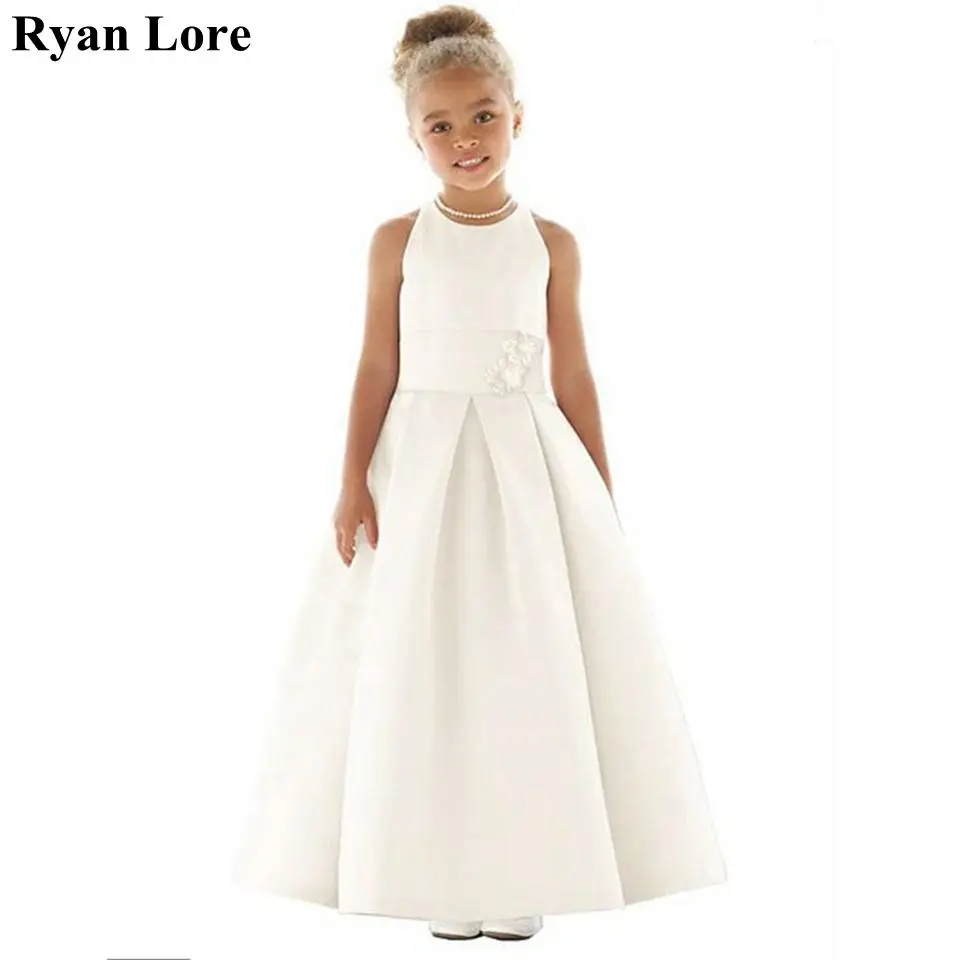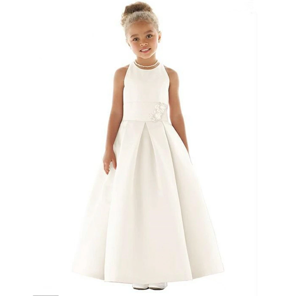 Платье для девочки с аппликацией, простой элегантный наряд цвета слоновой кости, с цветочным принтом, для свадьбы, первого причастия, дня рождения, без рукавов