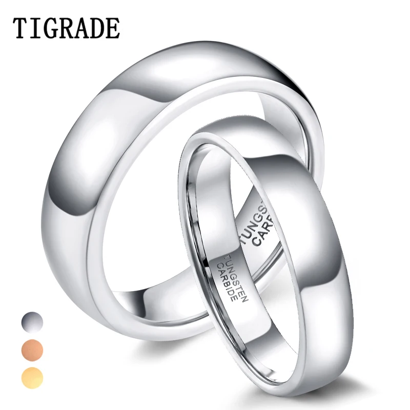 Обручальное кольцо Tigrade для мужчин и женщин, классическое обручальное кольцо из вольфрама, золотистого цвета, цвета розового золота, специальная Дата записи, имя
