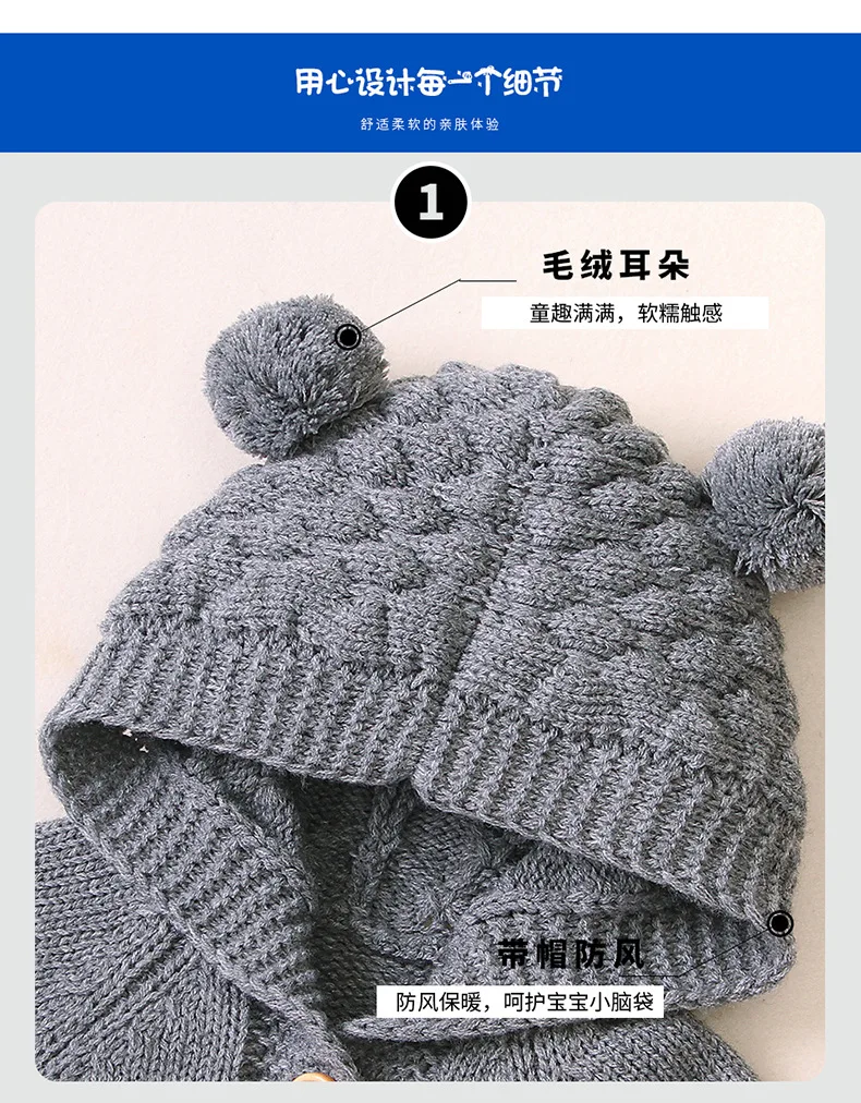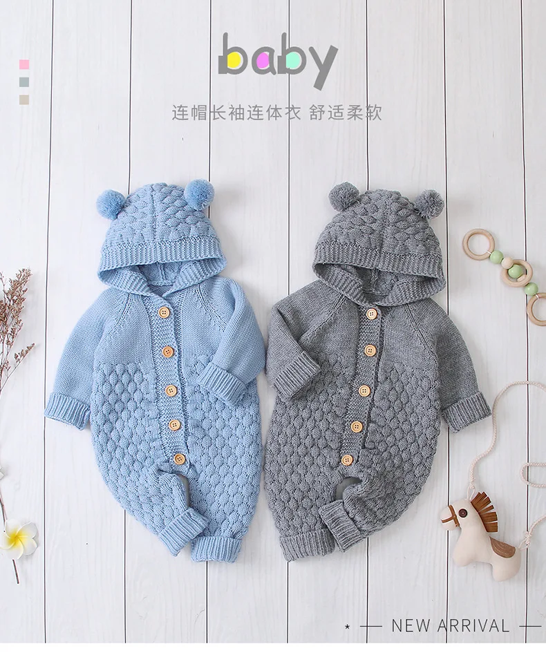 Детский трикотажный комбинезон, шерстяной свитер с капюшоном с шари...