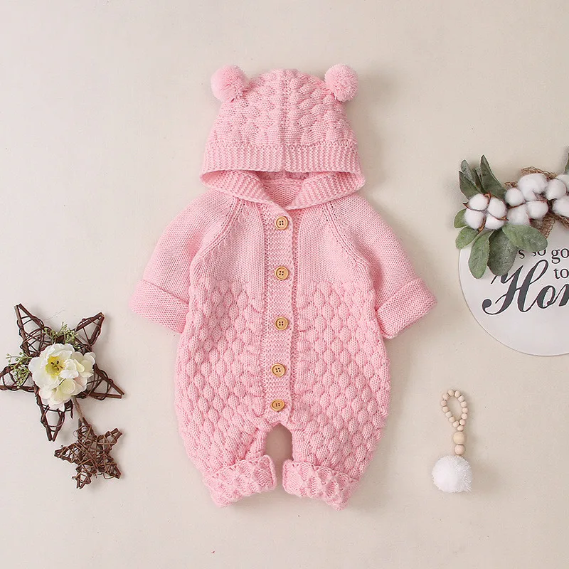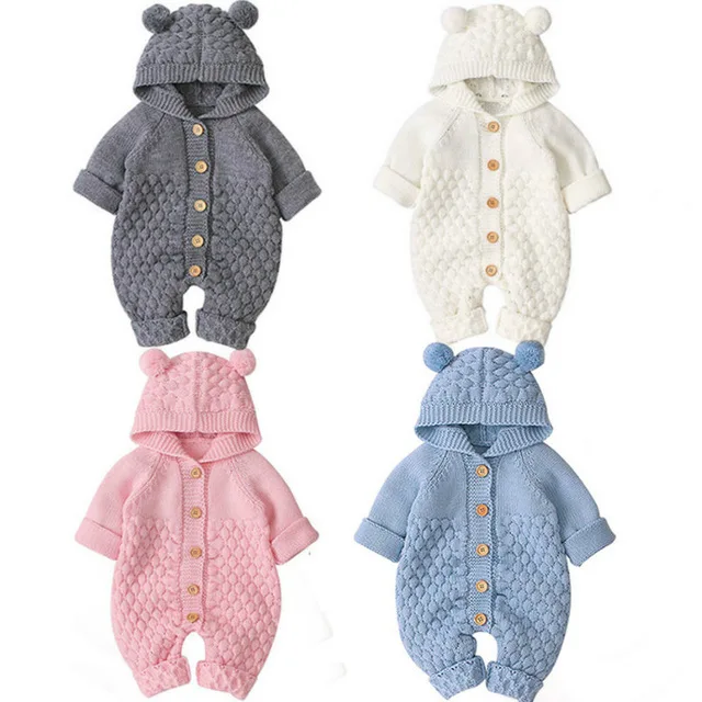 Вязаный комбинезон с ушками медведя для девочек и мальчиков, свитер...