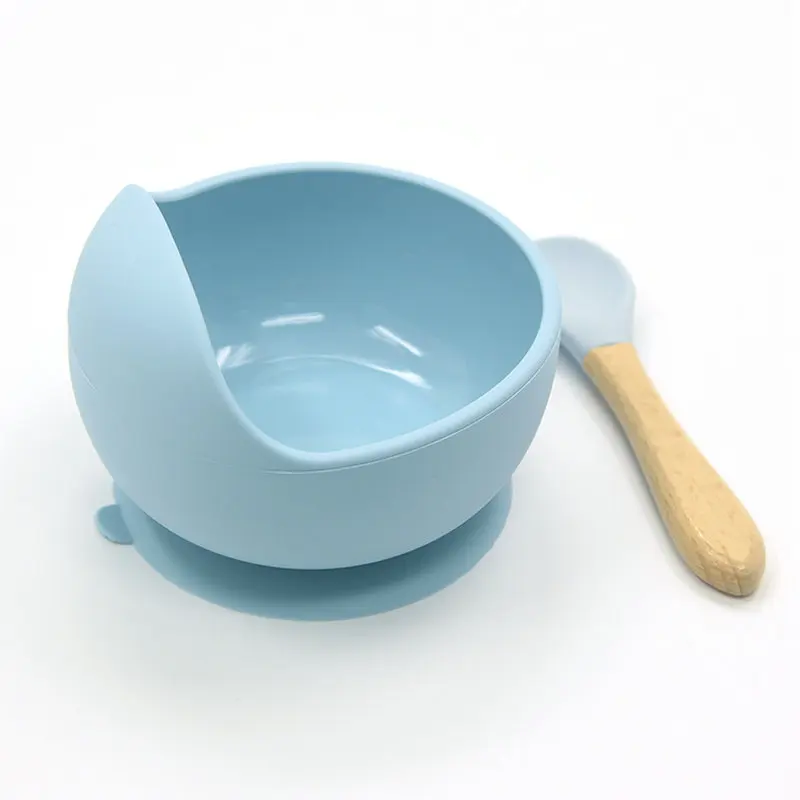 Детский силиконовый набор для кормления, деревянная ложка на присоске, детская посуда для малышей, высококачественный силикон без бисфенола А