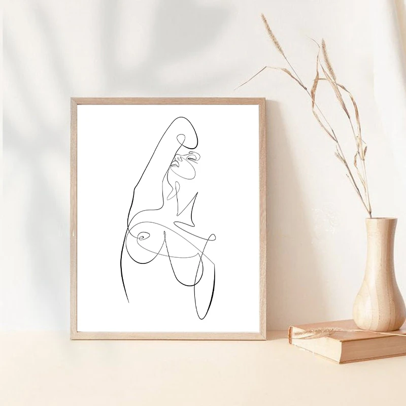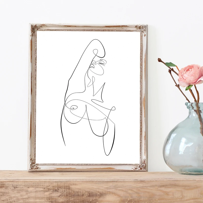 Абстрактная женская обнаженная Художественная печать эротическая женщина художественный Однолинейный плакат черная белая минималистская Настенная картина на холсте Декор