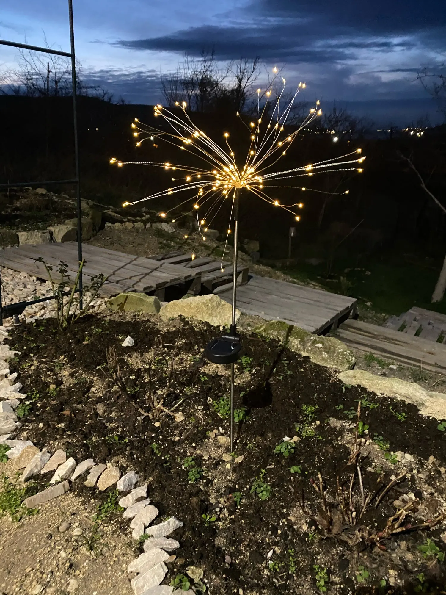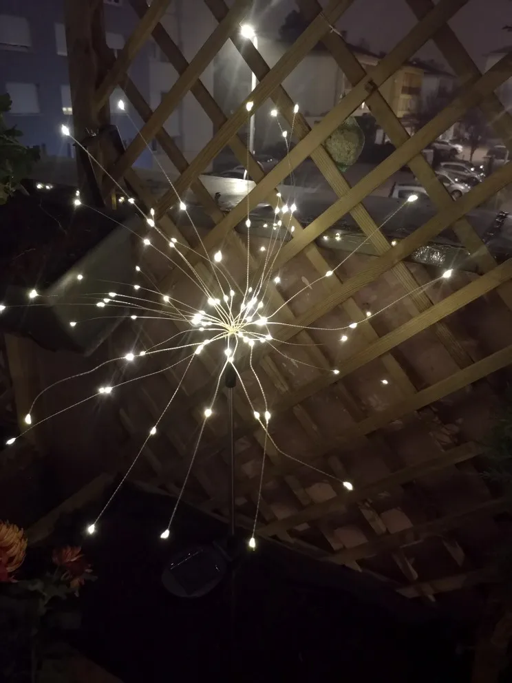 Светильники очень красивые, в преддверии нового года самое то. Солнца сейчас маловато, поэтому дневного заряда хватает всего на 5 часов.