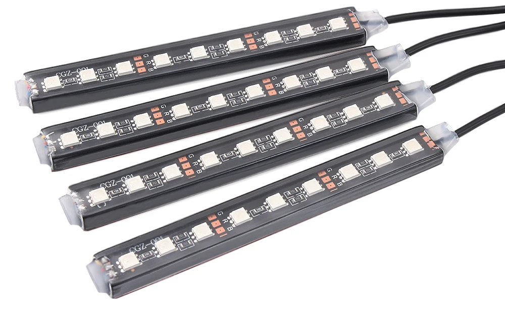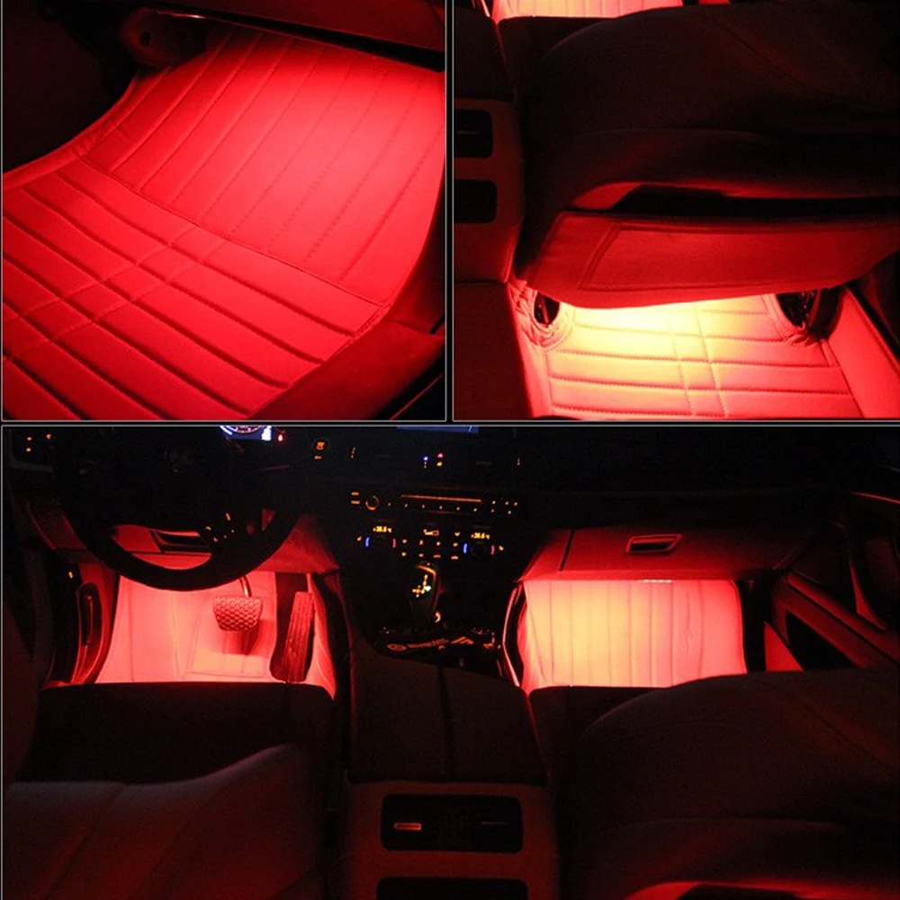 7) 4 шт. автомобильный RGB светодиодный светильник, Светодиодная лента, светильник, s цвета, автомобильный Стайлинг, декоративные атмосферные лампы, автомобильный интерьерный светильник с пультом дистанционного управления
