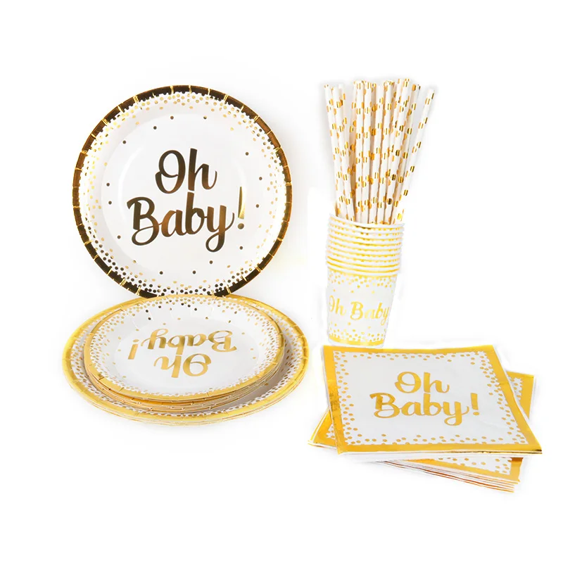 Золотые детские бумажные тарелки, салфетки, шары для детского дня рождения, товары для 1-го дня рождения, праздничные украшения для детей, подарок на день рождения