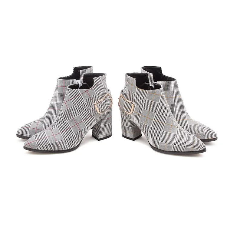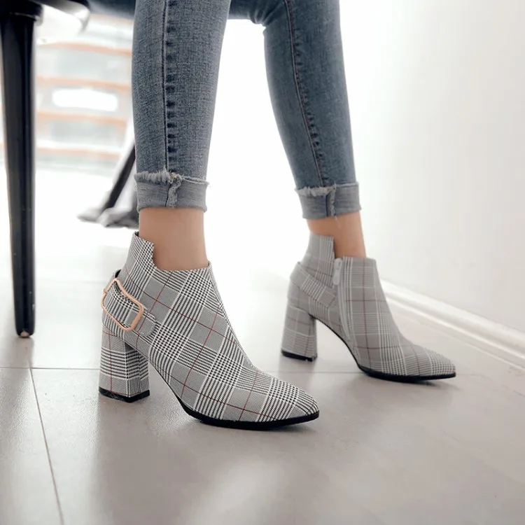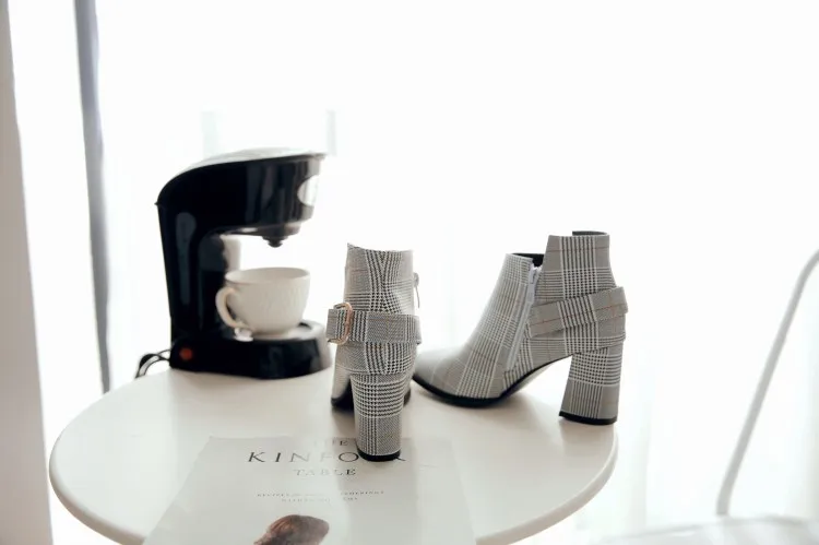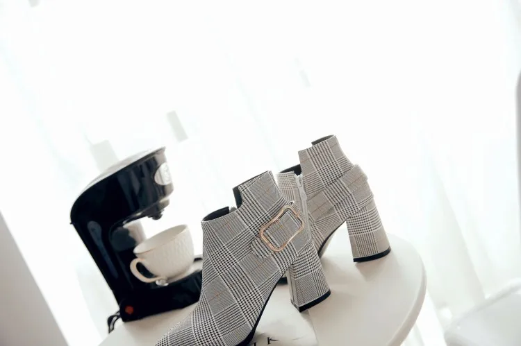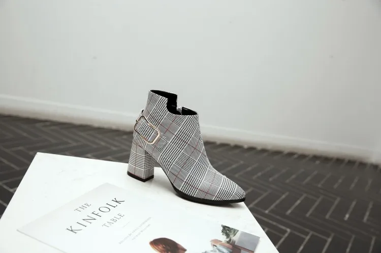 Женские ботинки на высоком каблуке, осенне-зимние ботинки в клетку,...