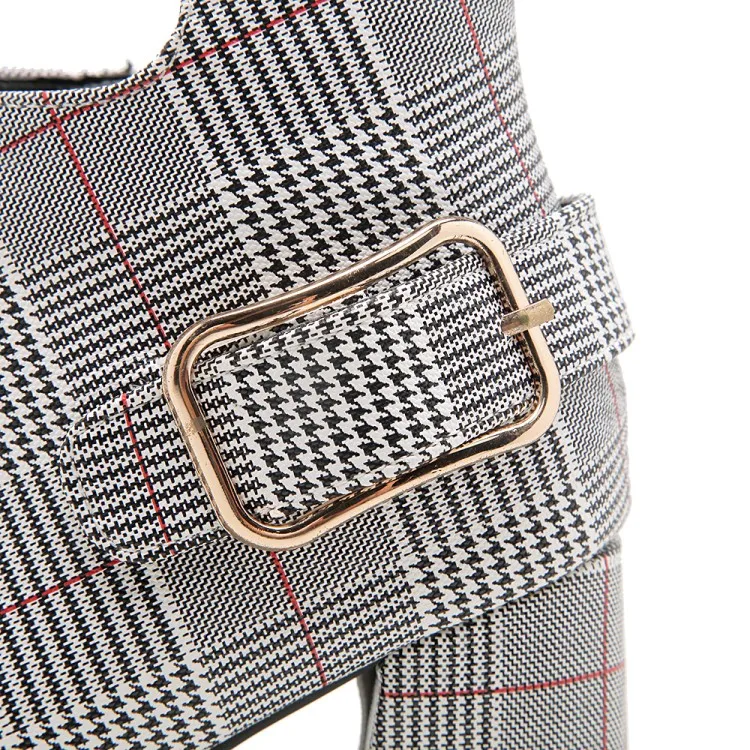 Женские ботинки в клетку, с ремешком и пряжкой, большие размеры 9, 10, 11-16, ботильоны для женщин