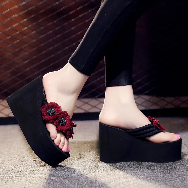 Женские шлепанцы на высокой танкетке 11 см, тапочки ручной работы, женские летние пляжные мюли, женские Тапочки