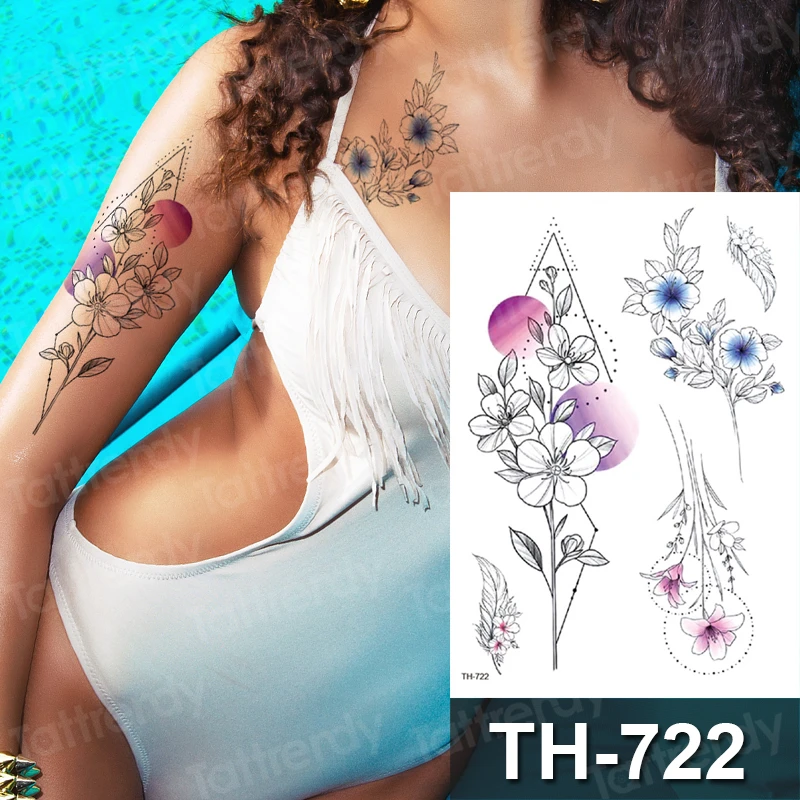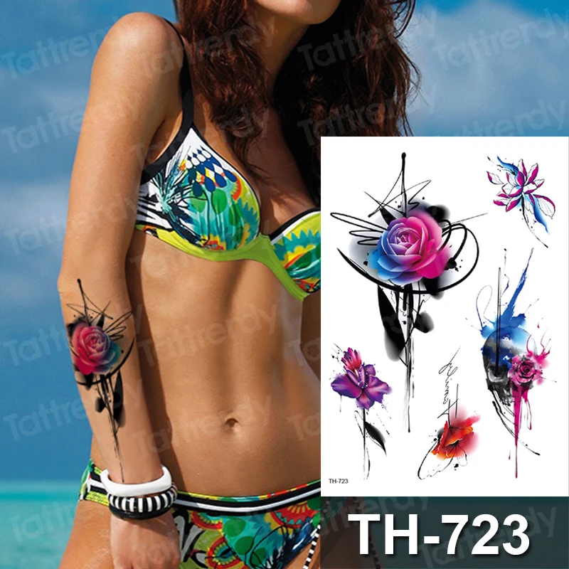 Сексуальная временная татуировка, цветок, ласточка, рыба, тату, акварель, растягивающийся цветок, тату, дизайн животных, водостойкая татуировка, искусственный боди-арт