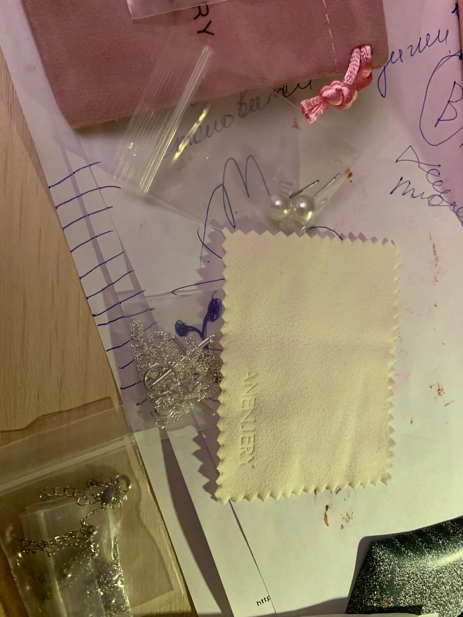 Выглядит супер, но цепочуа мне маловата. Продавец отправил подарок. Тряпочку для чистки изделия, мешочек и серьги пуссеты в виде жемчужинок