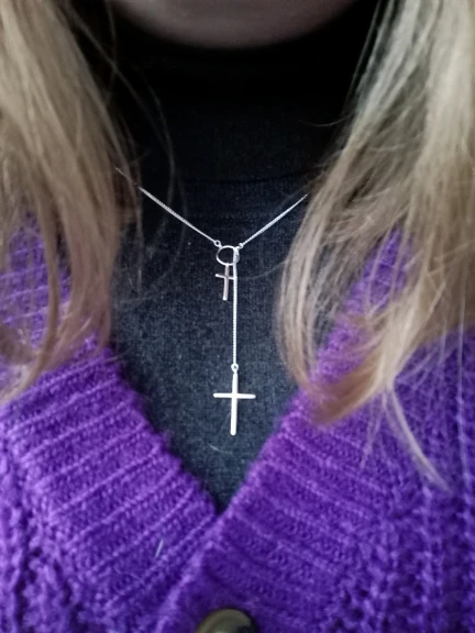 Очень стильная подвеска. Выглядит как настоящее серебро. Тоненькая и аккуратная. Супер!