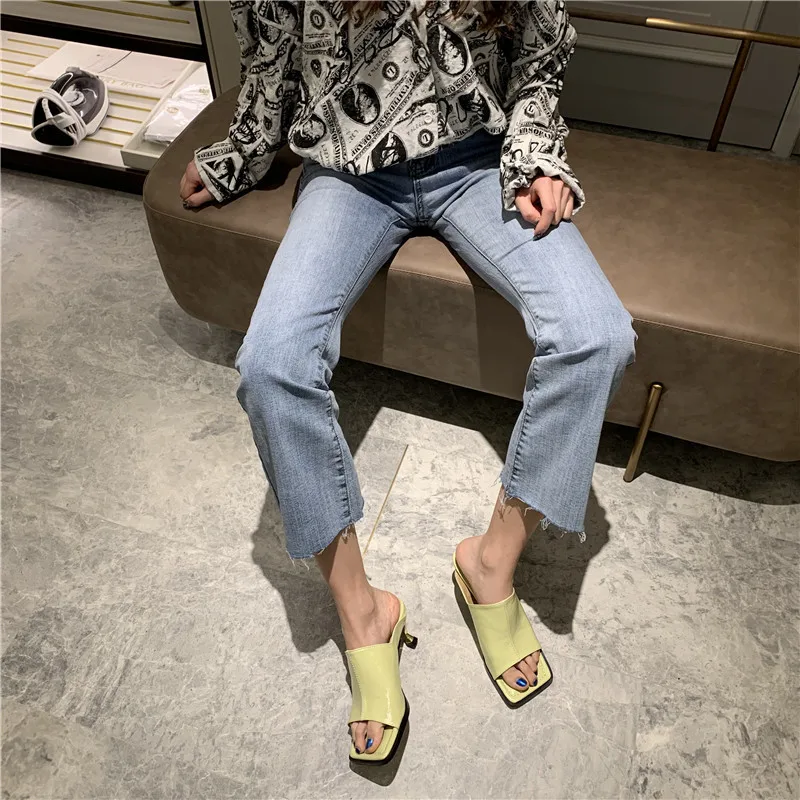 Новинка 2021 года; Модные женские босоножки; Сандалии с открытым носком на среднем квадратном каблуке; Женские пляжные шлепанцы; Обувь для отдыха; Размеры 35-39