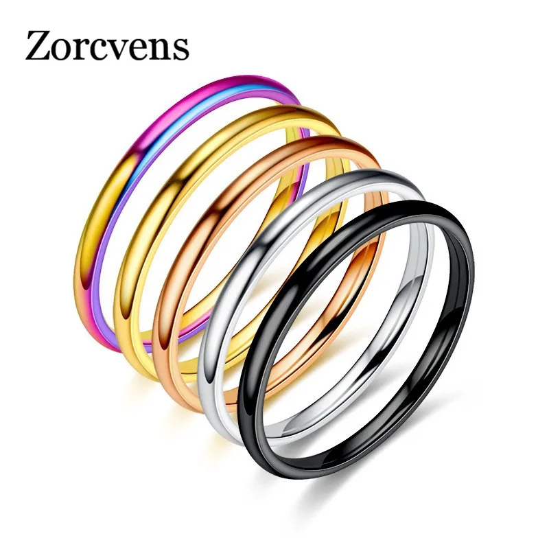 Новинка 2021, простое тонкое женское кольцо zorcins 2 мм, 4 цвета, нержавеющая сталь, элегантное вечернее свадебное кольцо, ювелирные
