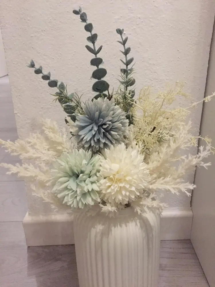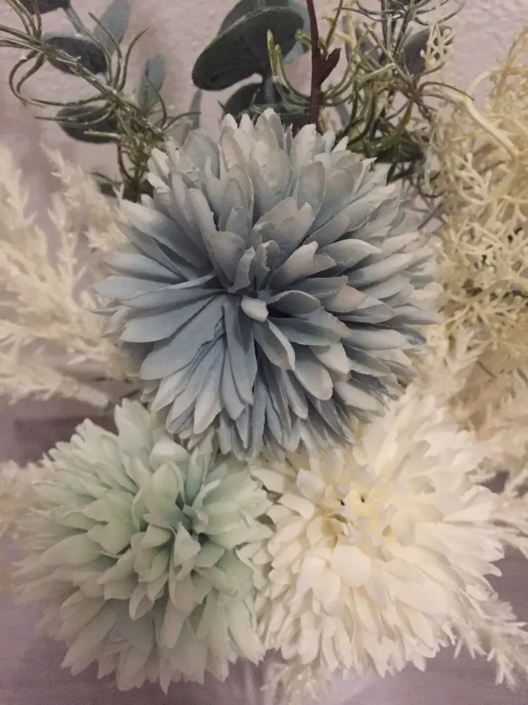 It is very beautiful and true to the pictures, i could wish that the eucaluptus leaves could spread more. Three of them drizzles, but i gave them hair spray and now they are perfect. I concider to use it as my wedding flowet, i may want it bigger, so i now ordered 2 ekstra. I will recomend this product. Only one bad thing, really long shipping, 2 months i waited