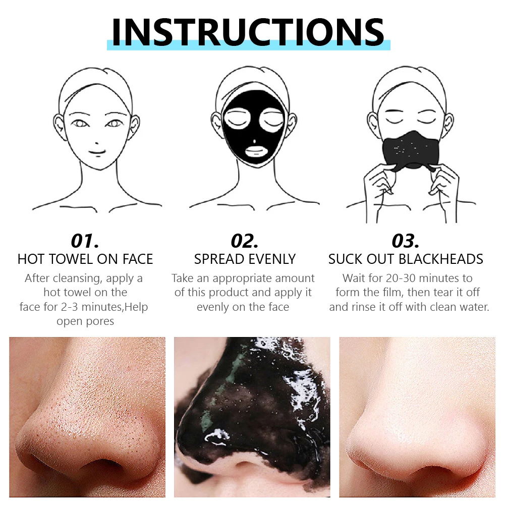 1. Горячее полотенце на лице: После очищения нанесите горячее полотенце на лицо в течение 2-3 минут, помогите открыть поры2. Равномерно распределить: Возьмите соответствующее количество этого продукта и равномерно нанесите его на лицо3. Высасывайте черные головки: подождите 20-30 минутСоздайте пленку, затем оторвите ееИ снимите краску с чистой водой.