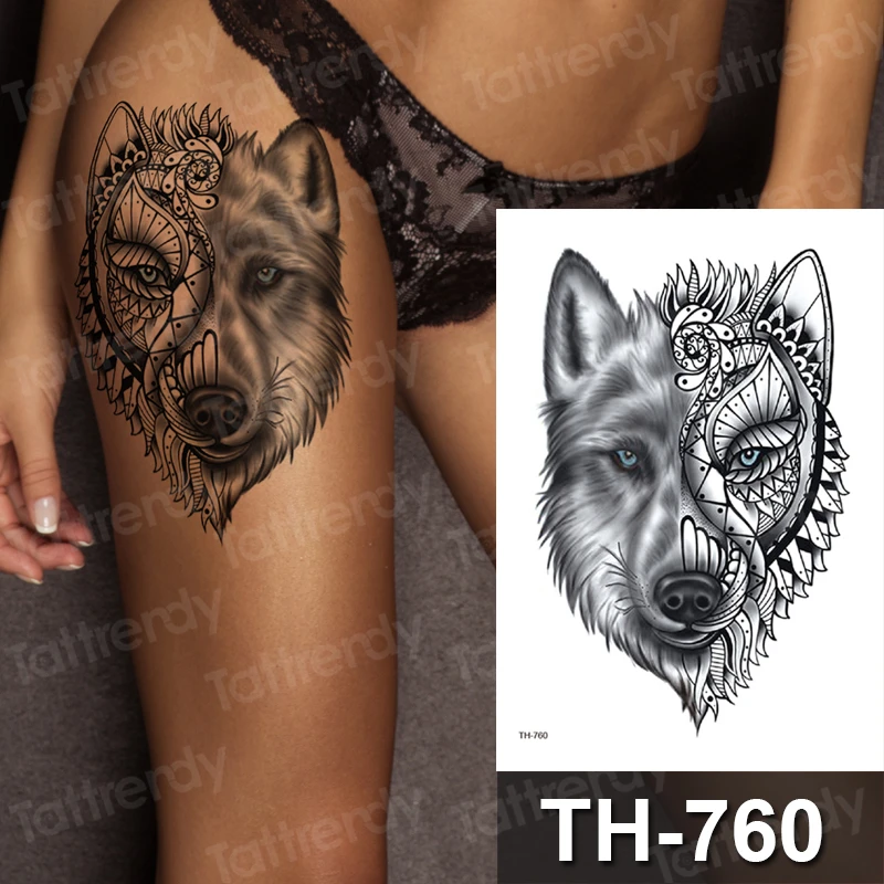 Временная татуировка, волк, лиса, животные, тату, сексуальные бедра, ноги, грудь, тату для девочек, бикини, наклейка, стойкая татуировка, черная водонепроницаемая
