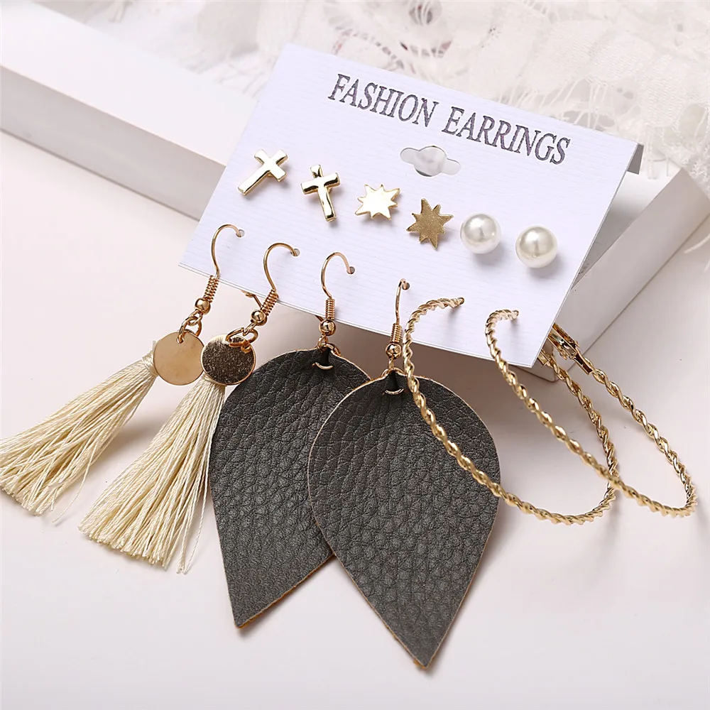 Модные Винтажные большие смешанные Комплект сережек для женщин геом...