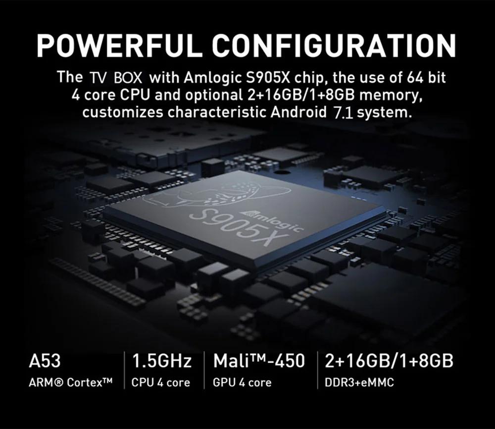 CPU: четырехъядерный процессор Amlogic S905X ARM Cortex A53