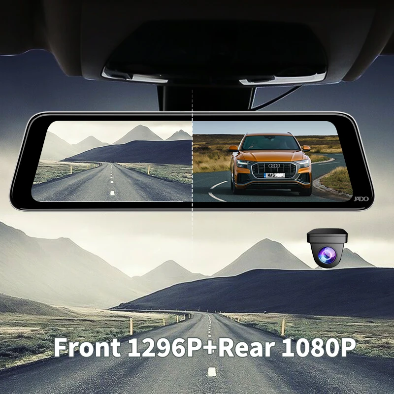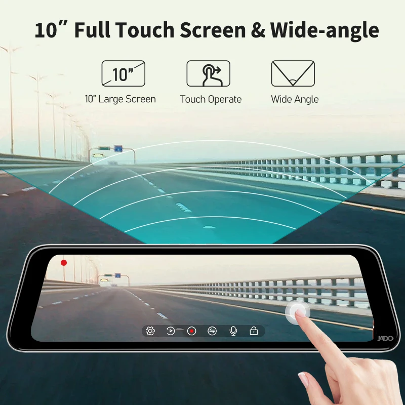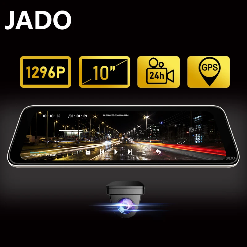 Видеорегистратор JADO HD 1296P, автомобильная камера с 10-дюймовым дисплеем, 24 часовым мониторингом парковки, IPS-экраном