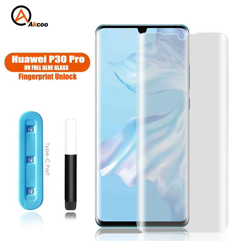 Akcoo закаленное стекло для Huawei P30 Pro, Защитная пленка для экрана, жидкая УФ-пленка с полным клеем, P30 lite, стеклянная пленка с олеофобным покрытием
