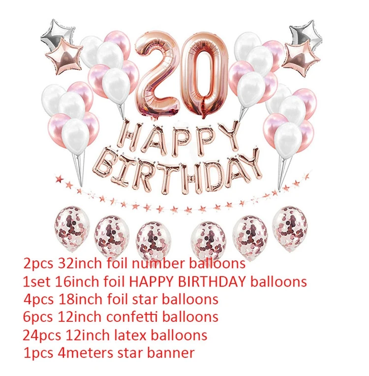 38 шт. 32 дюймов с 20 день рождения Фольга воздушные шары из розового золота синий розовый номер 20th лет взрослые вечерние украшения мужские и женские УП