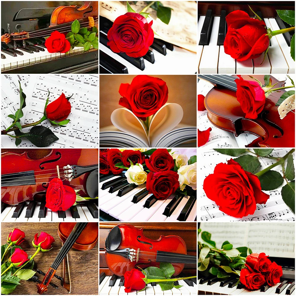 Diamond Mosaic Full Layout5D DIY Diamond Painting Rose Violin