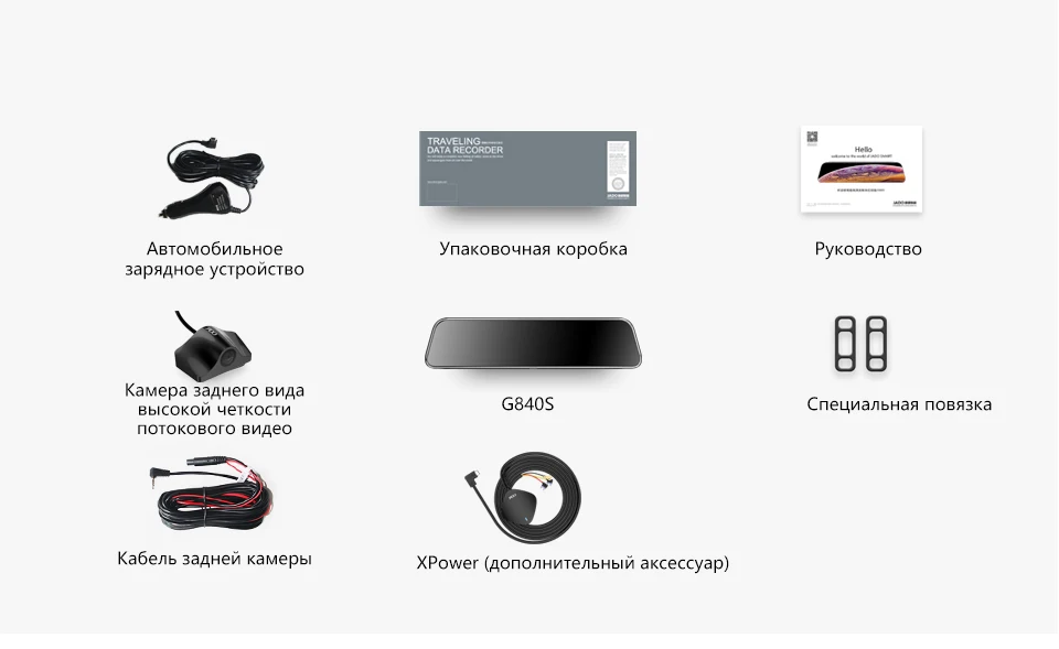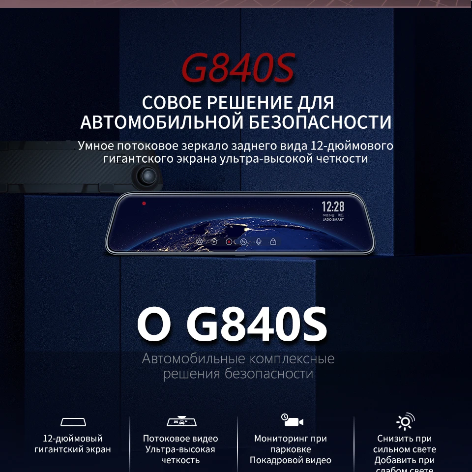 Зеркало-видеорегистратор JADO G840S, с камерой заднего вида 12 дюймов