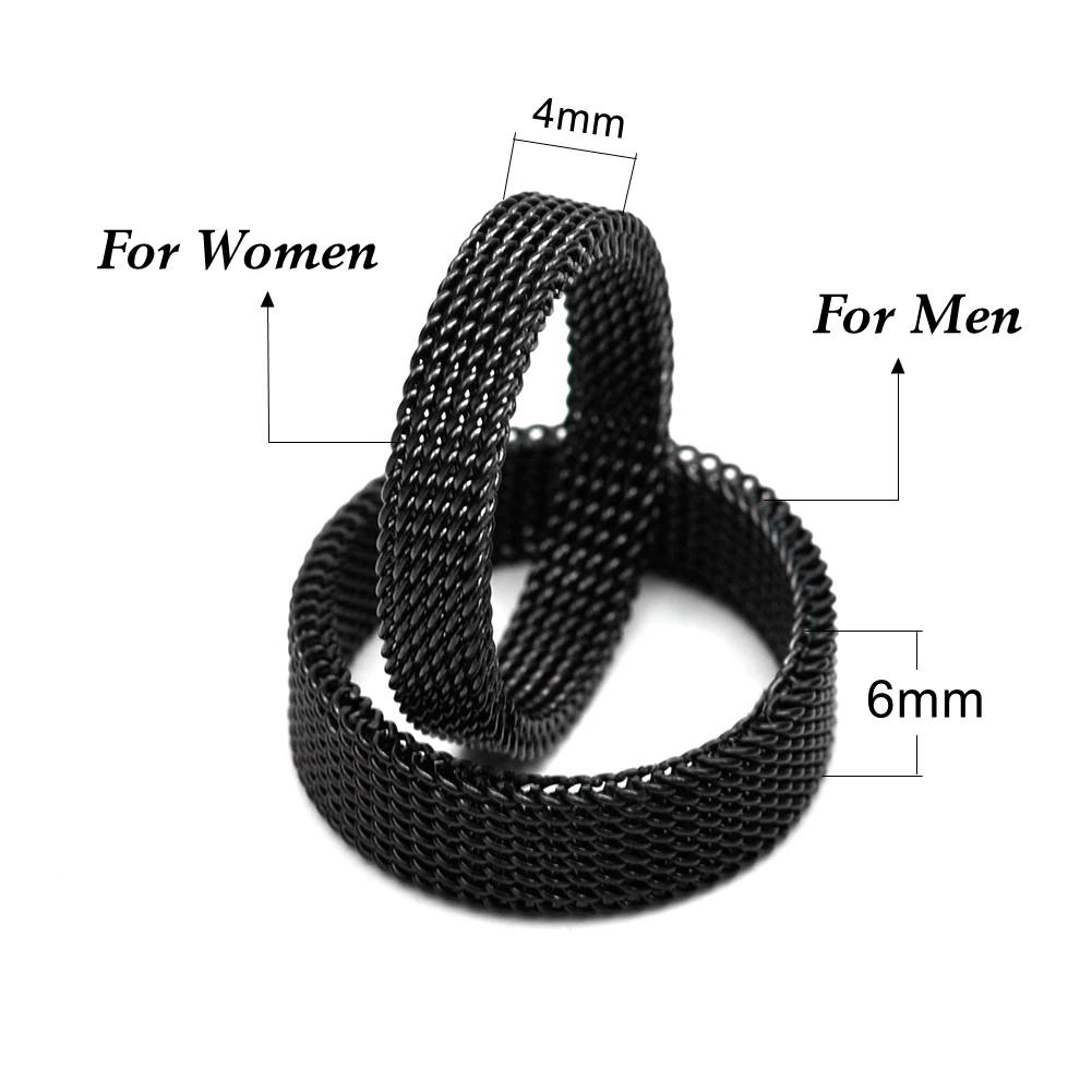 Женские и мужские кольца Beiliwol, модные, черные, из нержавеющей стали 316L, простой стиль, сетка, для пар, украшения, женский подарок