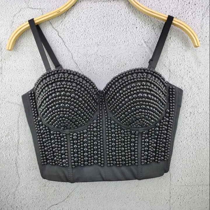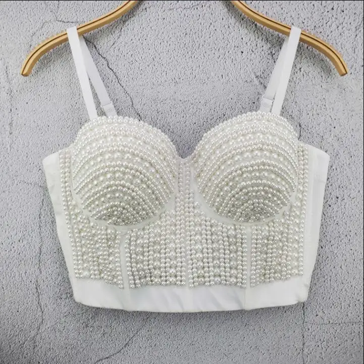 Женский модный, жемчужный бисер Топ без рукавов, бюстье с эффектом пуш-ап, укороченный топ для ночного клуба, модель L542