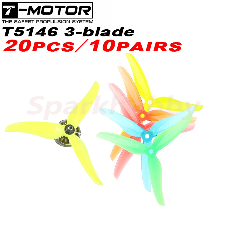 20 штук10 пар в комплекте; T-MOTOR T5146 3-лопастной пропеллер совместим Попо монтажное отверстие M5 центр толщина 7 мм для Радиоуправляемый гоночный Дрон с видом от первого лица