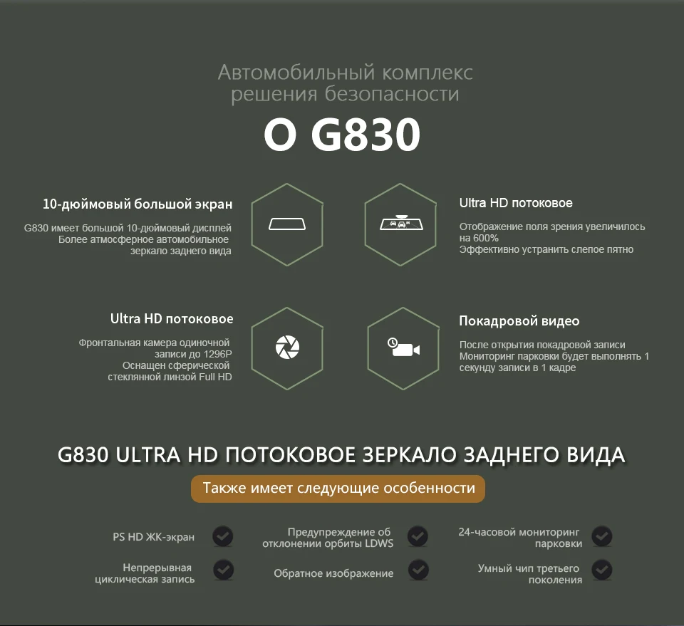 JADO G840S 12-дюймовая Автомобильная Dvr Камера фронтальная 1296P з...