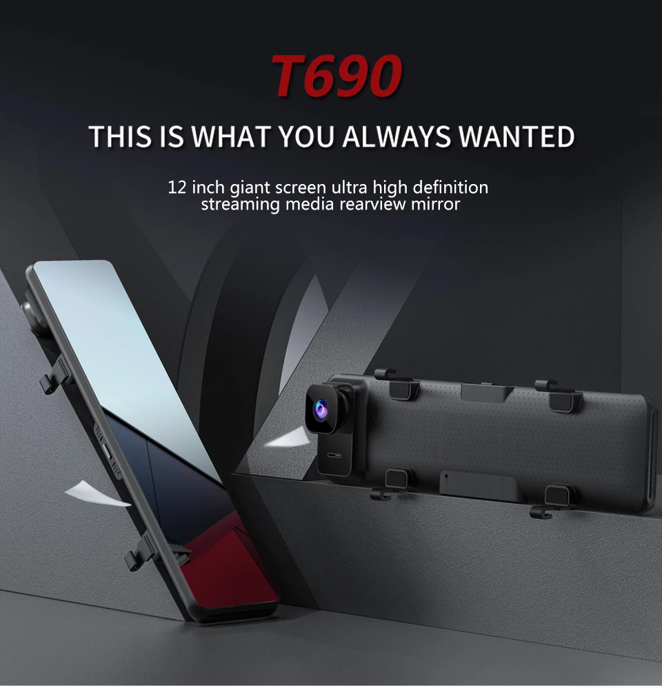 Зеркало-видеорегистратор JADO T690 с сенсорным экраном, 12 дюймов