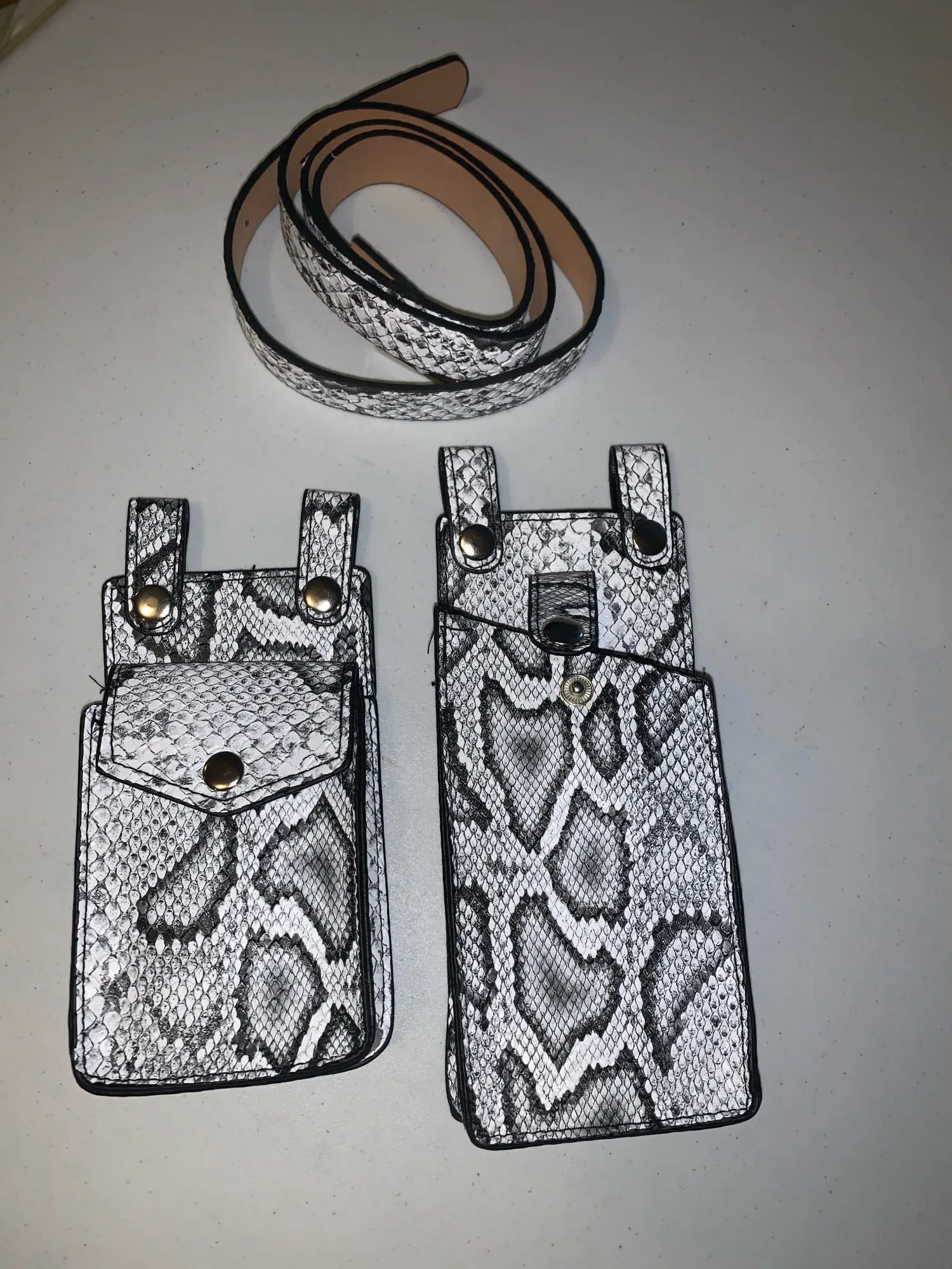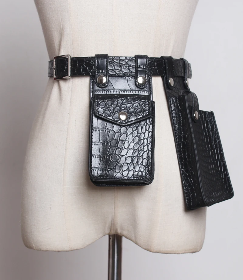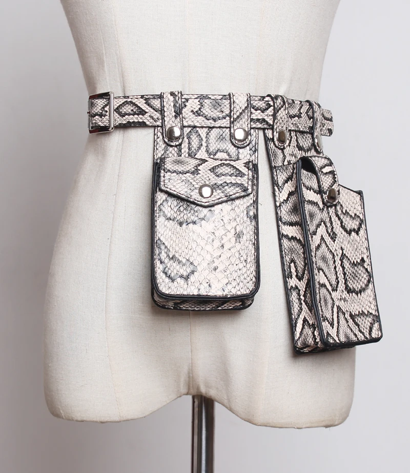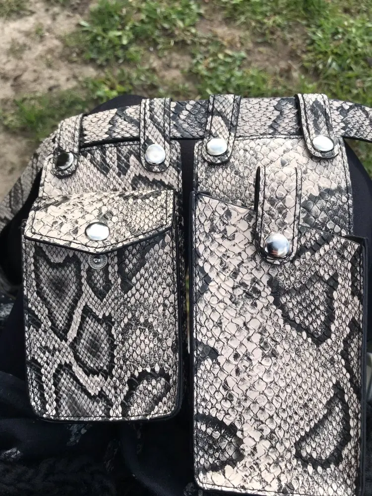 Женская поясная сумка с двумя карманами, Дизайнерская кожаная сумочка для телефона, забавная женская черная сумка из Искусственной Змеиной Кожи на ремне