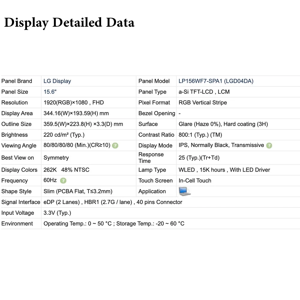 LP156WF7-SPA1 15,6 "ЖК-дисплей Широкоэкранный сенсорного экрана LP156WF7 для Dell Inspiron 15-5558 0DWYFX dwyfx 40pin 1920*1080 WUXGA FHD Размер экрана: 15,6" Подсветка: ЖК-дисплей Поверхность: Глянцевая Разрешение: 1920x1080 Качество: класс А +, без битых пикселей Состояние: Новый и протестирован задолго до отправки