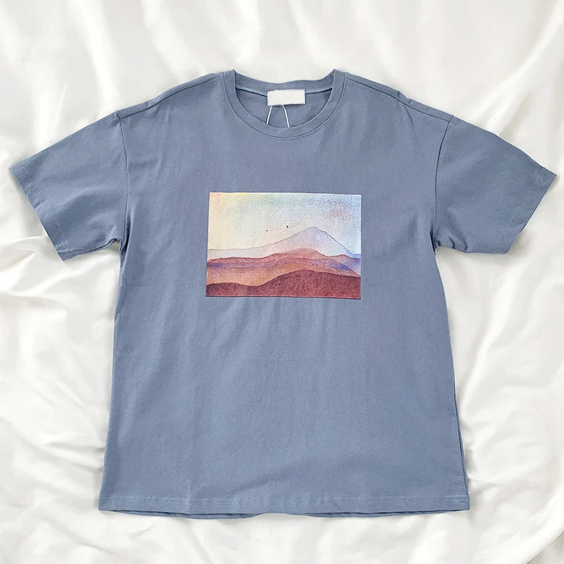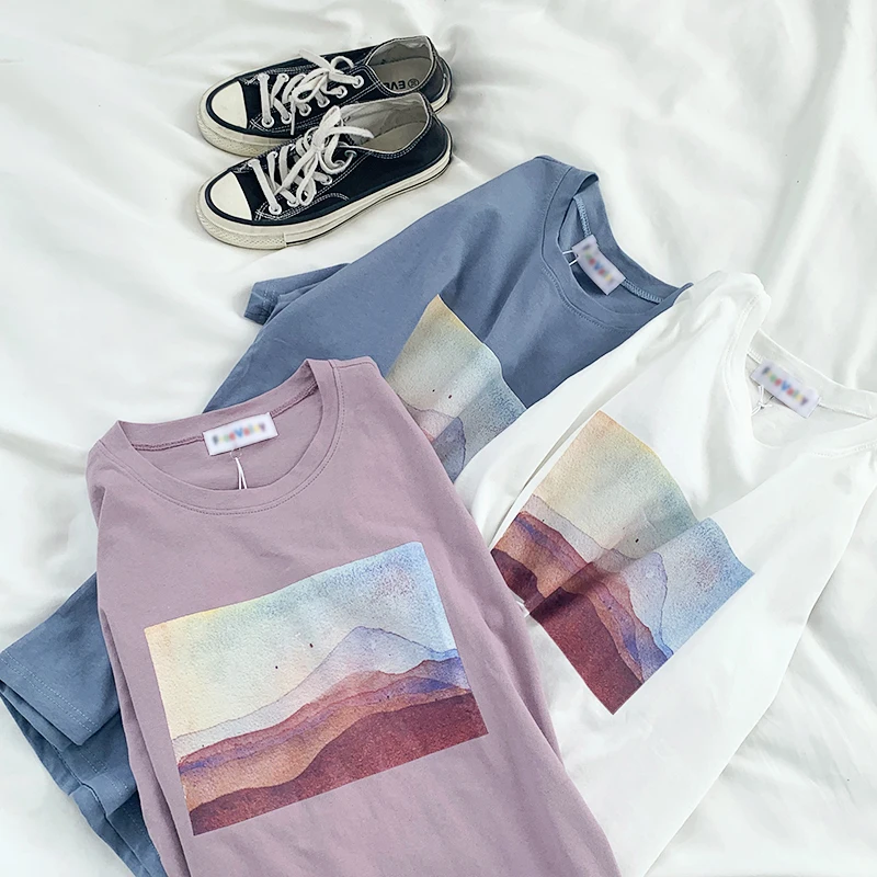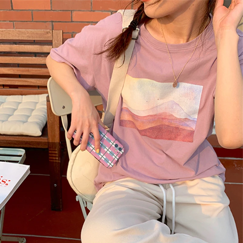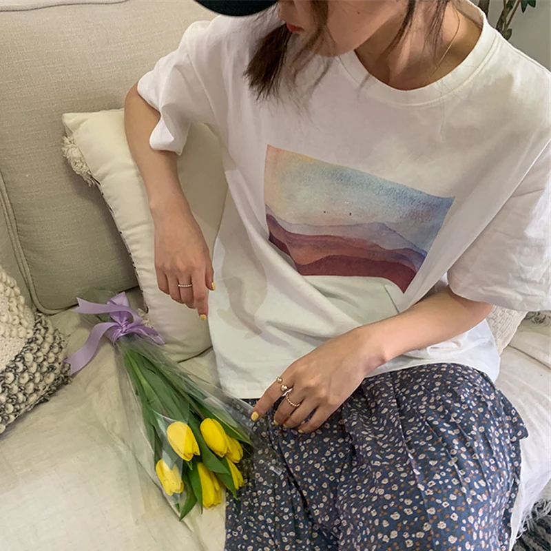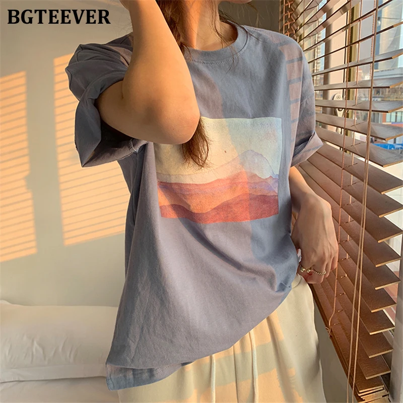 Женская хлопковая Футболка BGTEEVER, с винтажным пейзажным рисунком, повседневная, с коротким рукавом, белая, с круглым вырезом, лето 2020