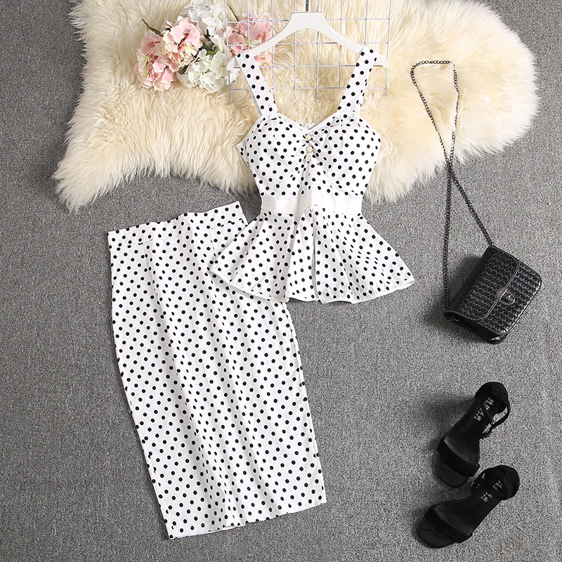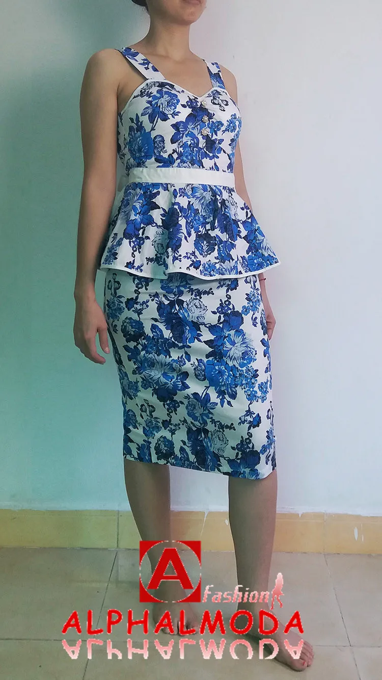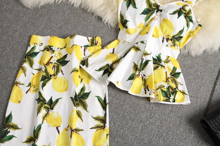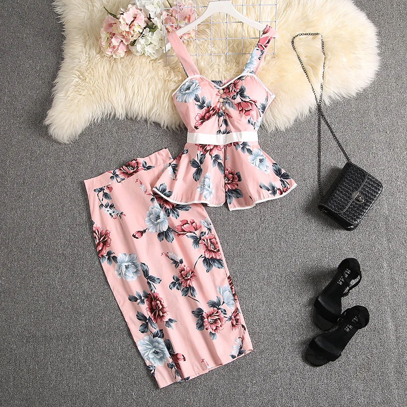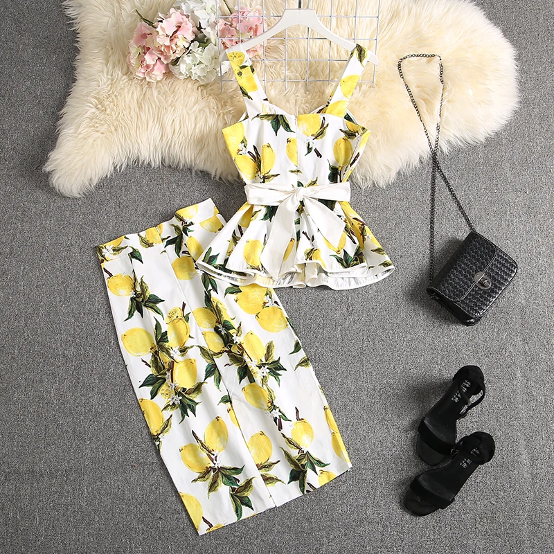 Женский костюм ALPHALMODA, майка и прямая юбка, комплект из 2 предметов, блузка с оборками и принтом, до колен, 2020