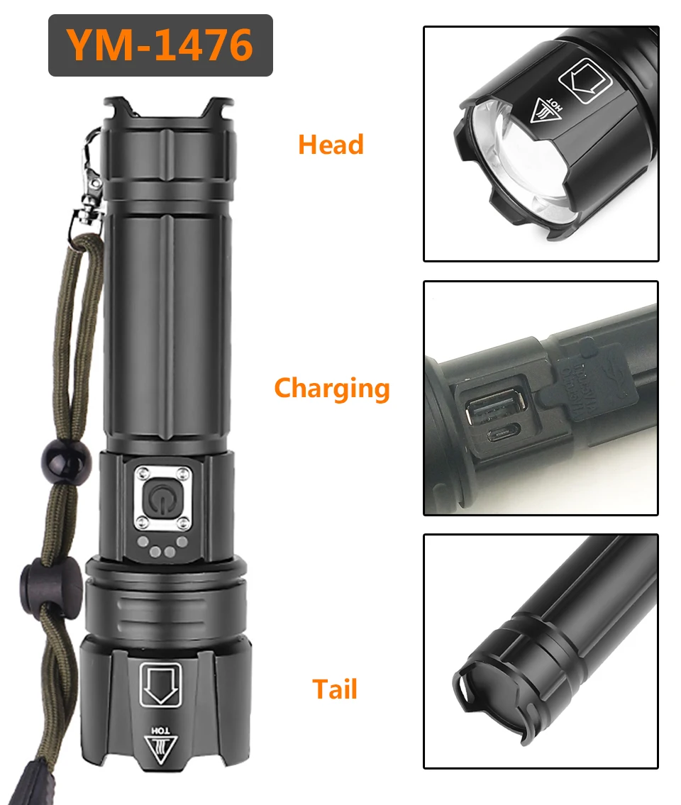 Фонарик YC50, xhp70.2, водонепроницаемый, с зарядкой от USB